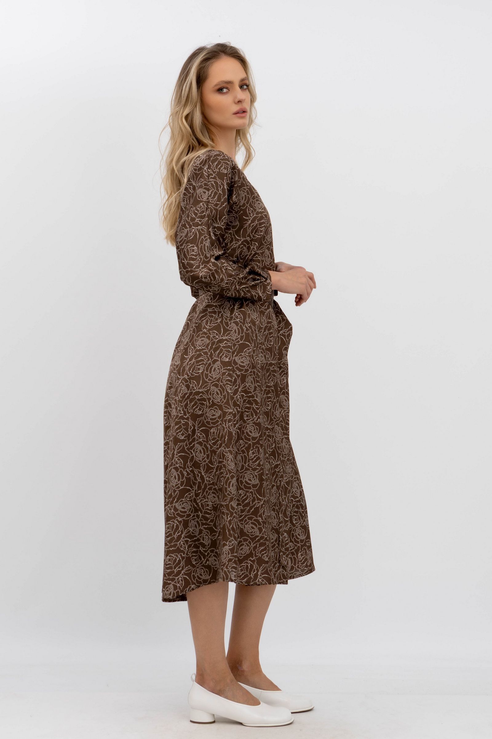 Шифонова сукня міді довжини коричневого кольору Кілена 02 - з новими колекціями кожного сезону
