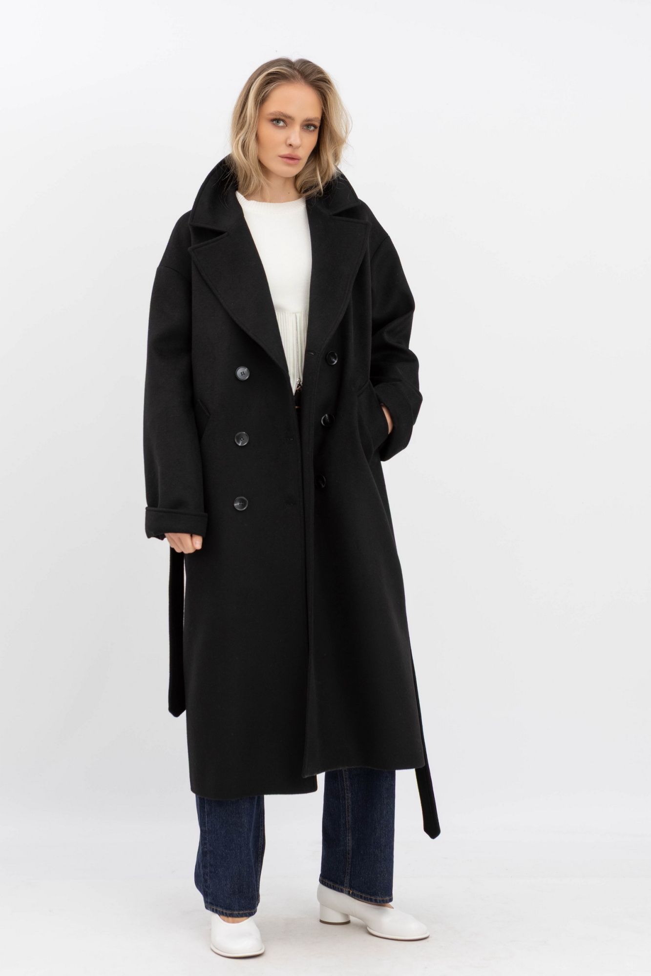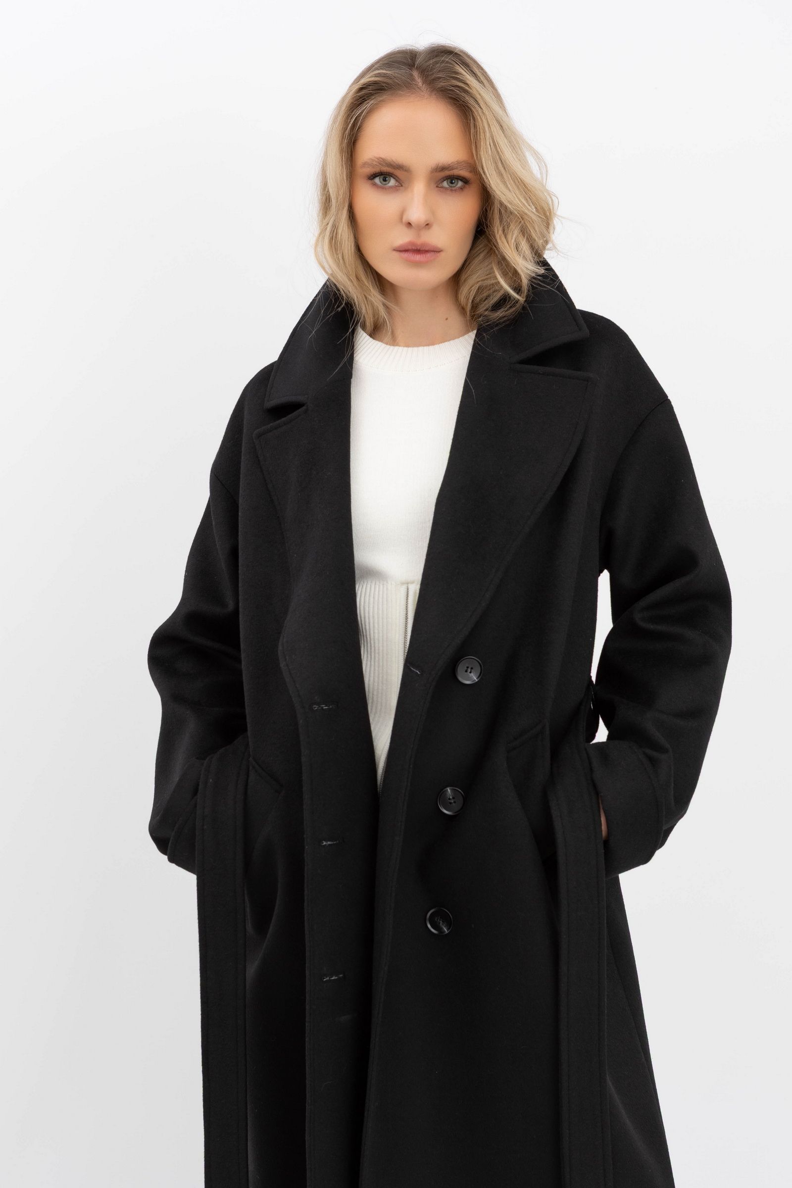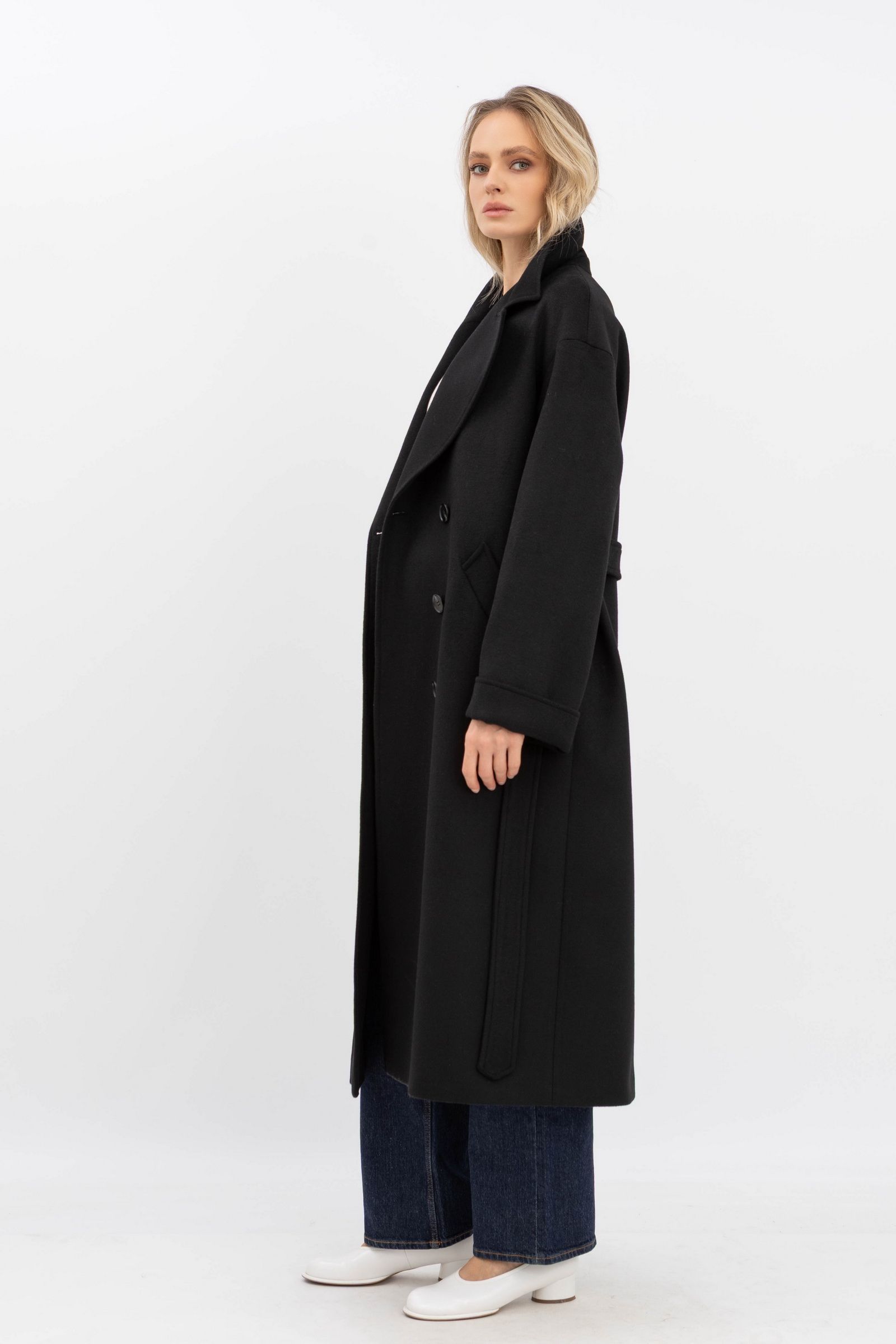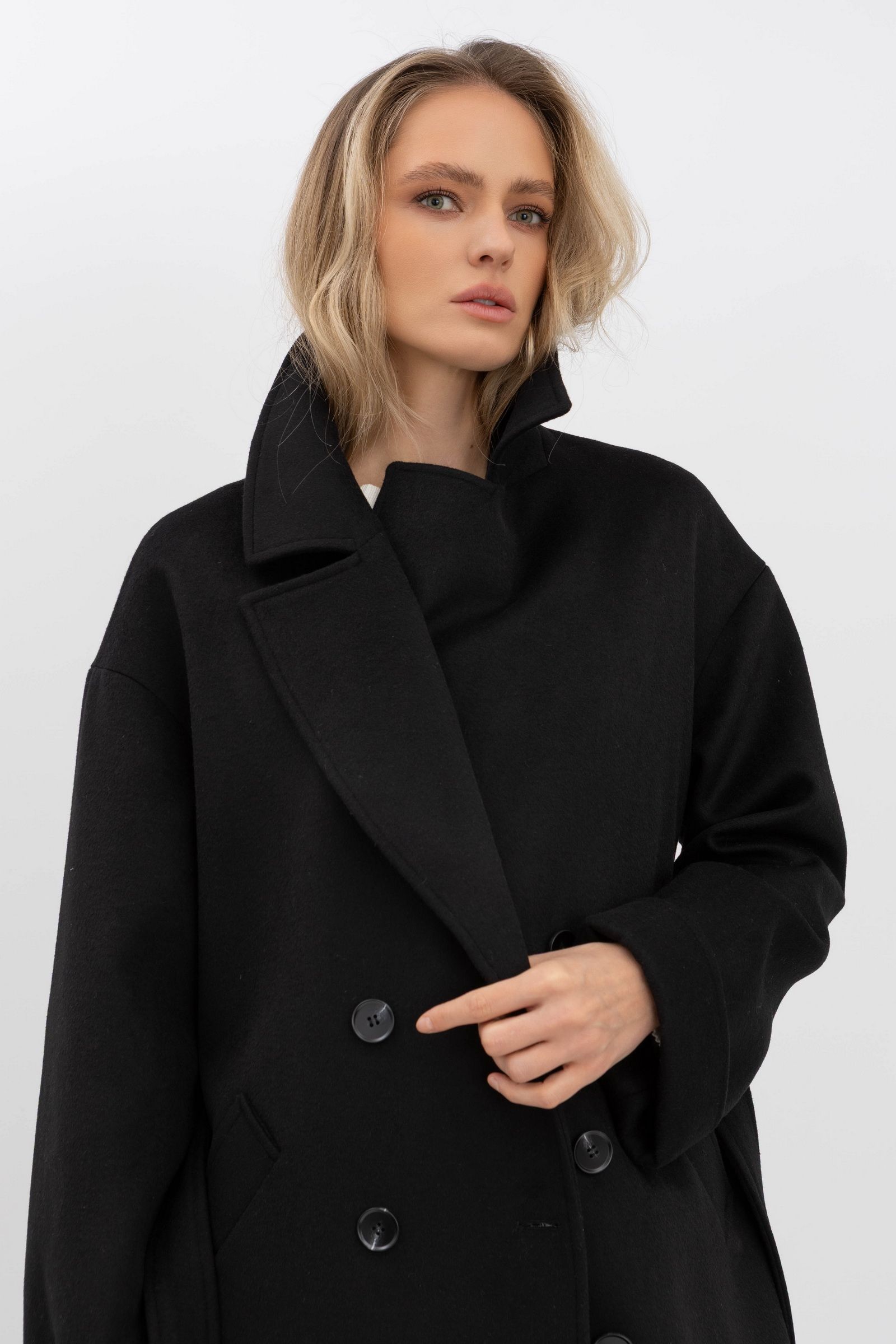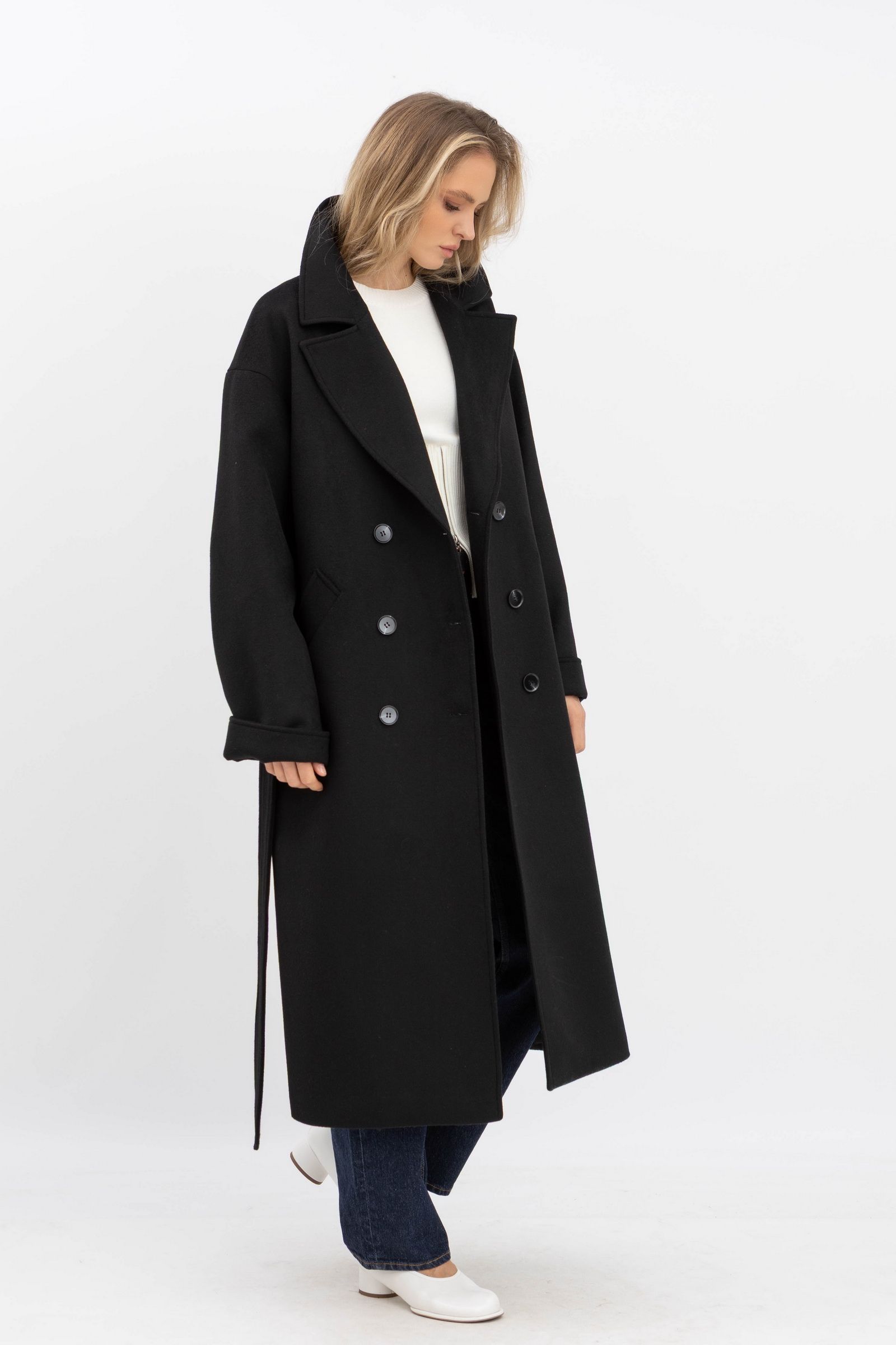 Класичне двобортне пальто чорного кольору 770/2025 - з різноманіттям кольорів та фасонів