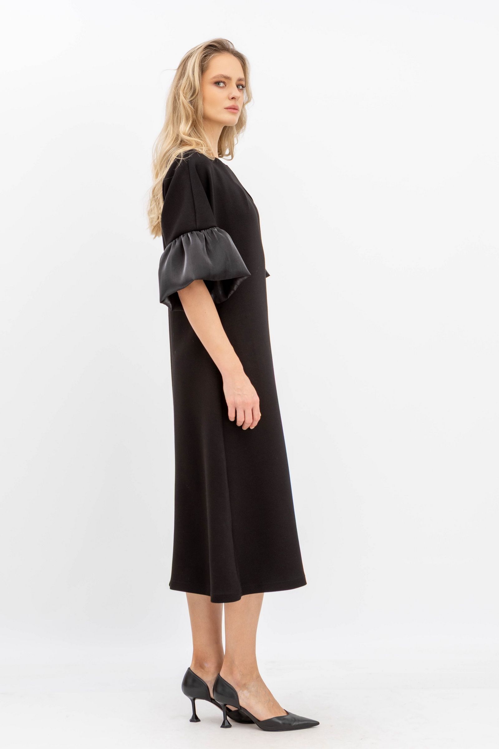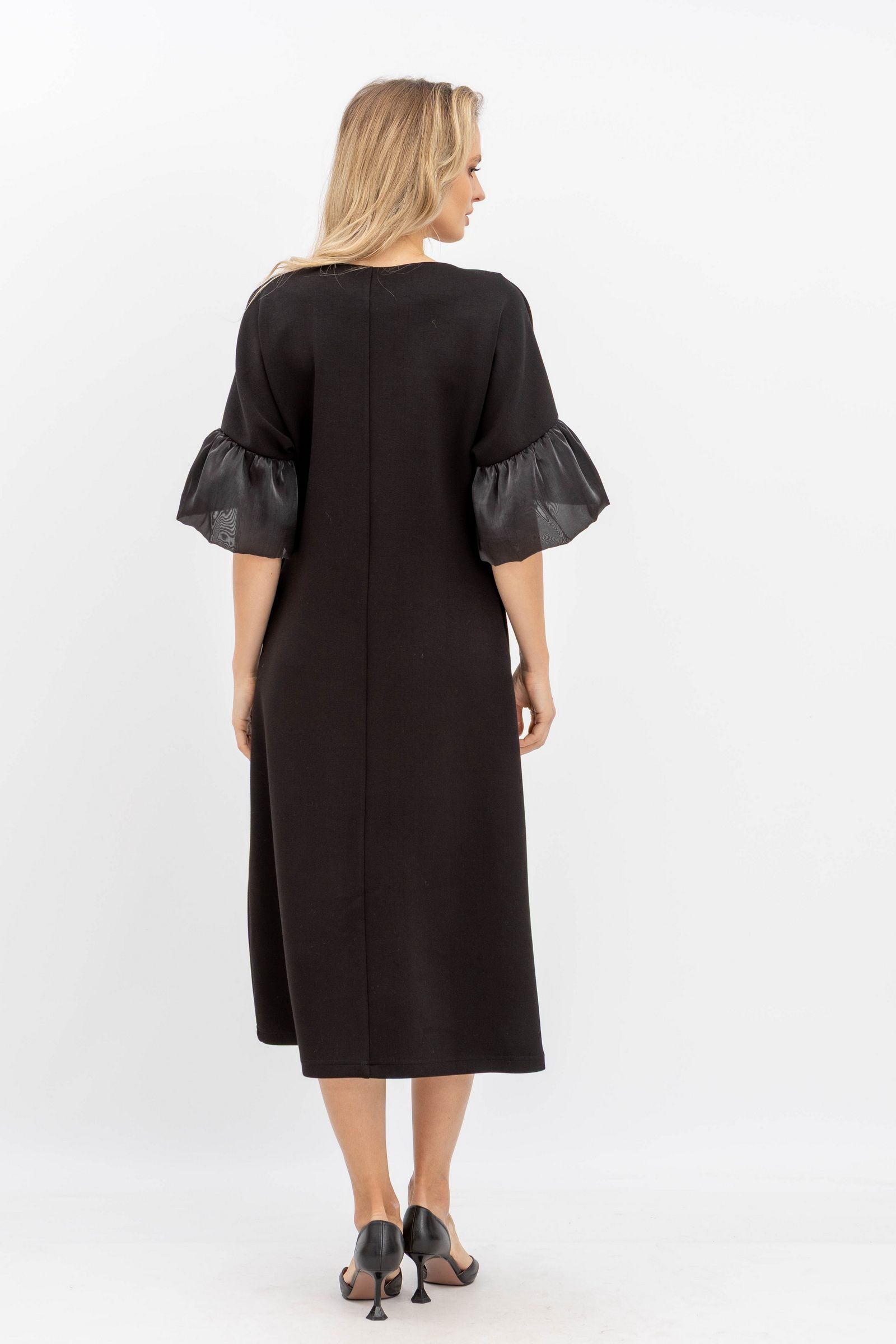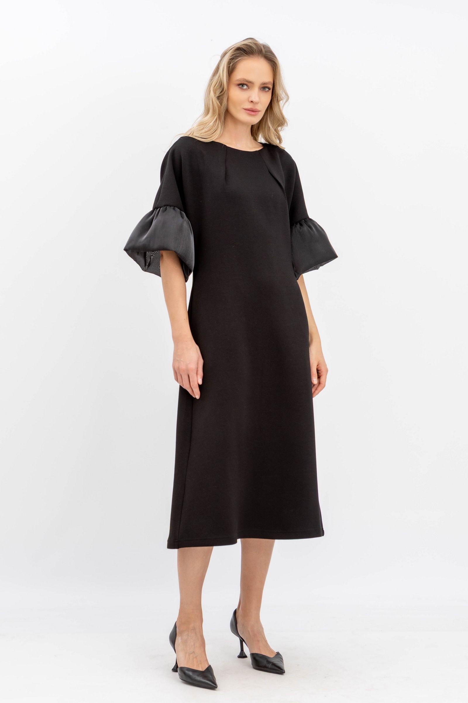 Чорна трикотажна сукня довжини міді силуету трапеція Росер - ваш вибір для стильного життя