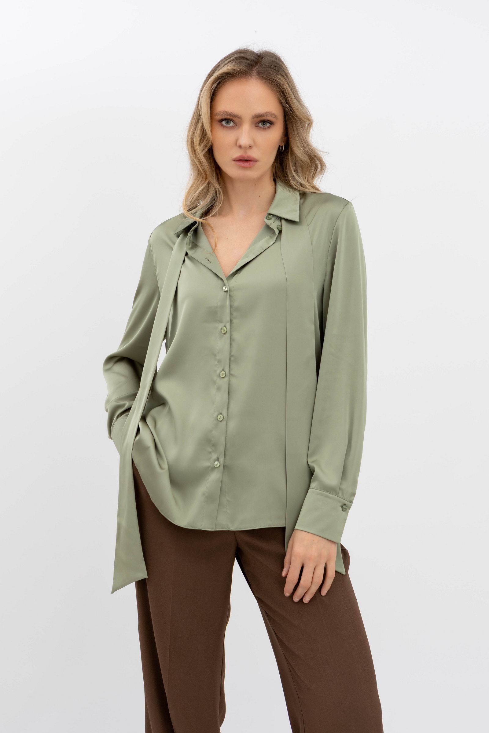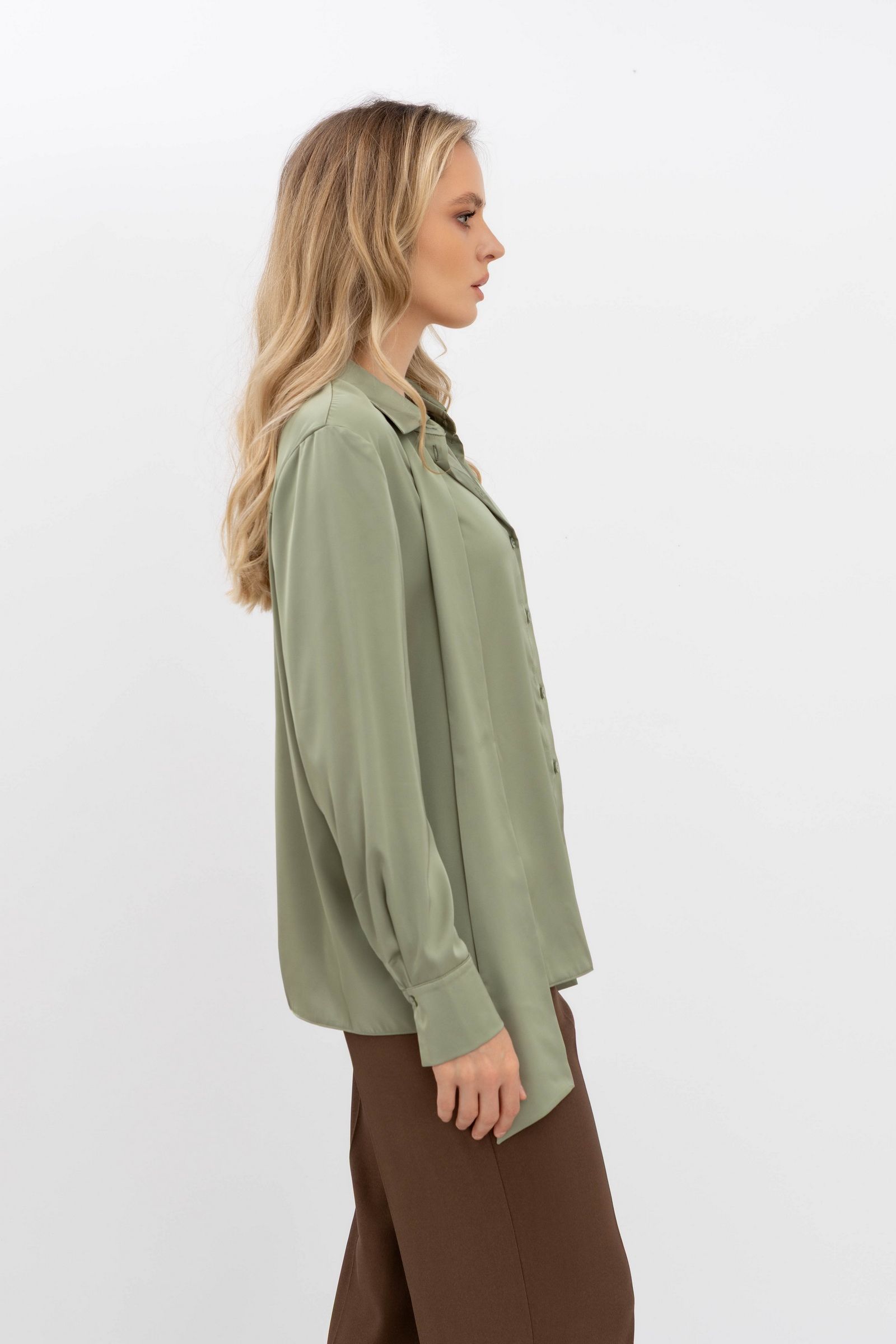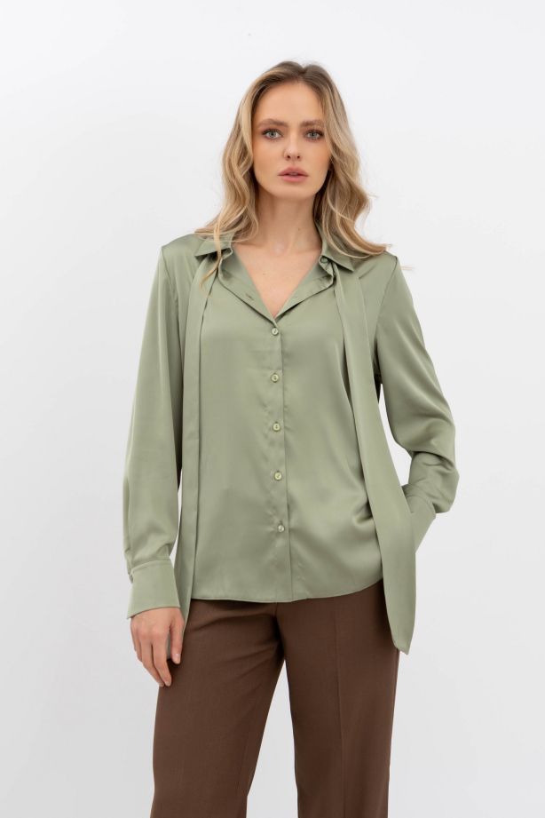 Класична блуза з коміром та довгим рукавом оливкового кольору Телета 07 - створіть свій унікальний образ