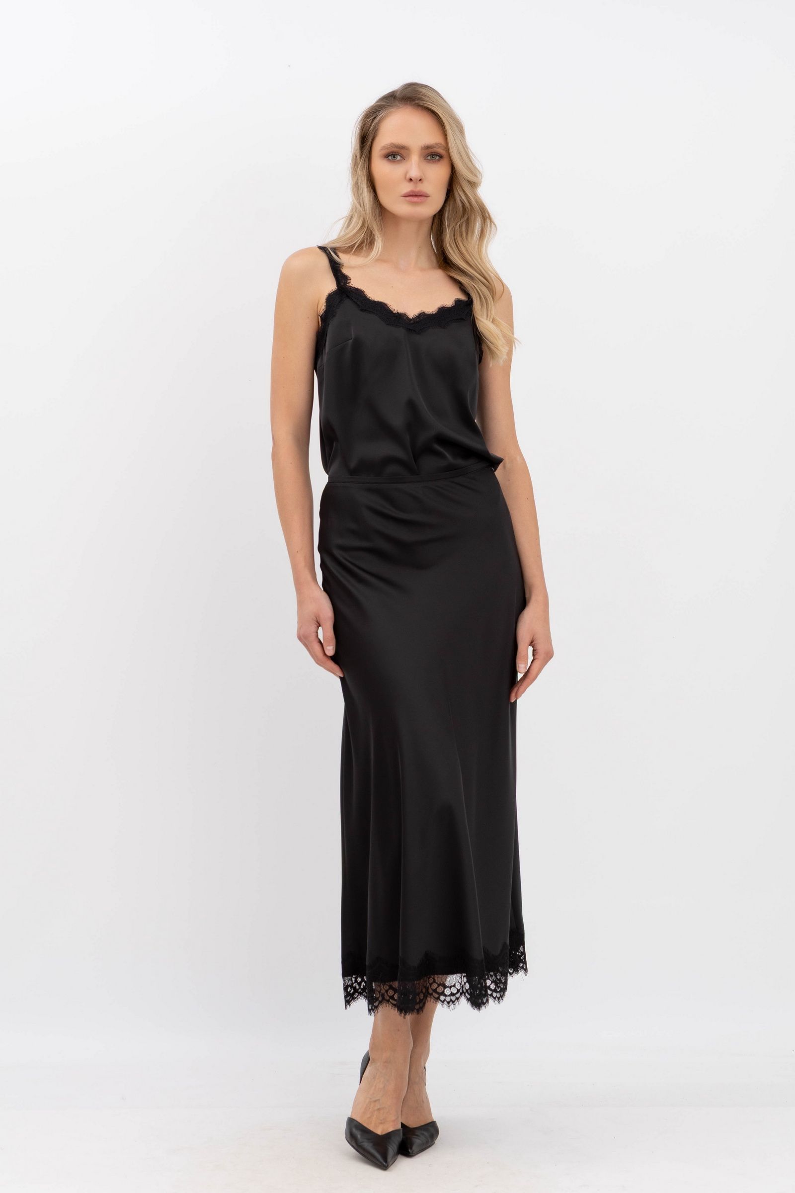Майка шовкова на бретелях чорного кольору Кісія - з різноманіттям кольорів та фасонів