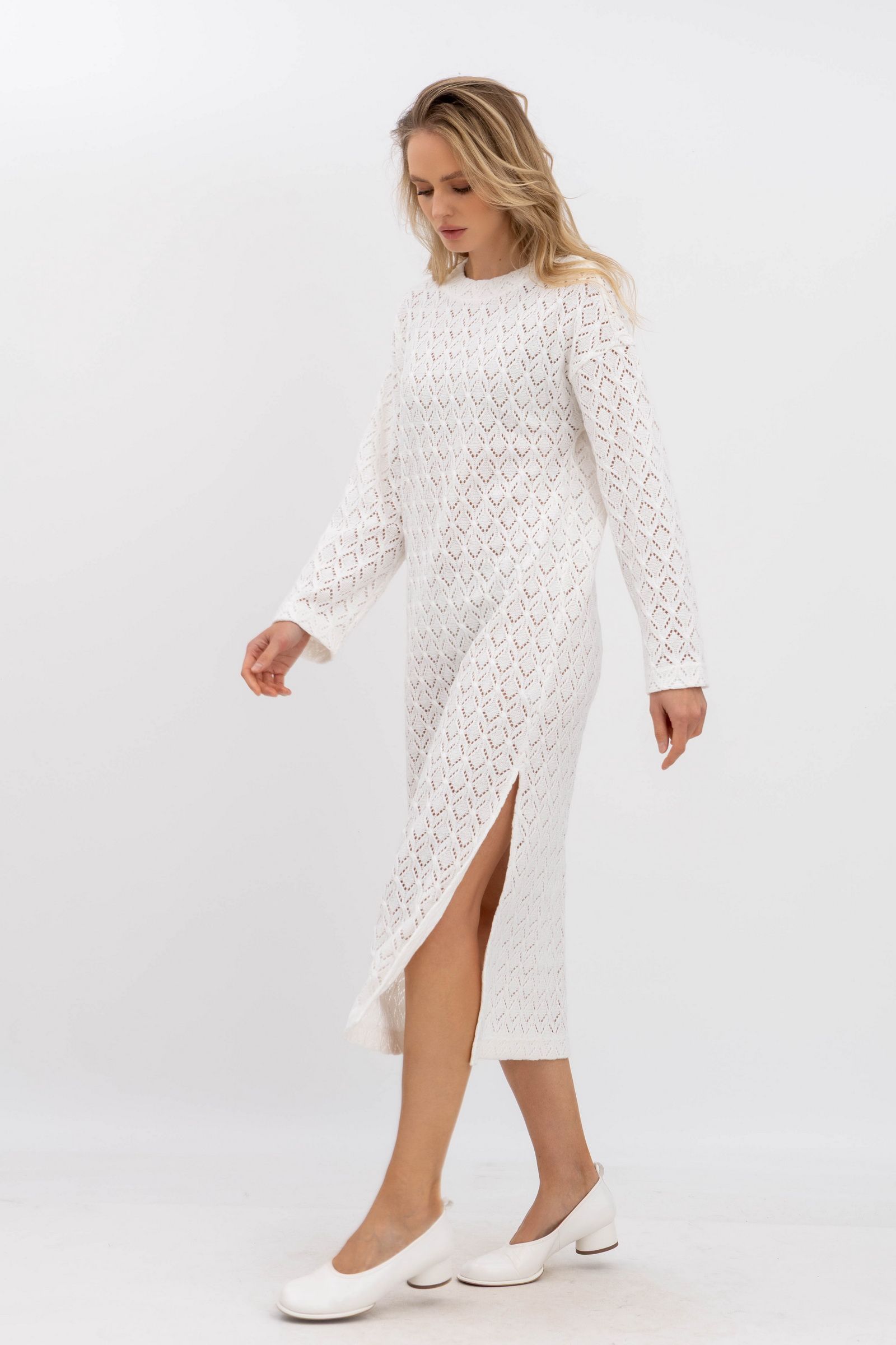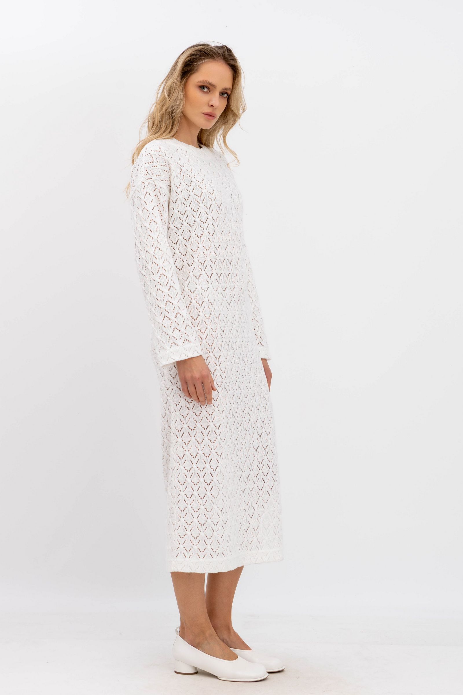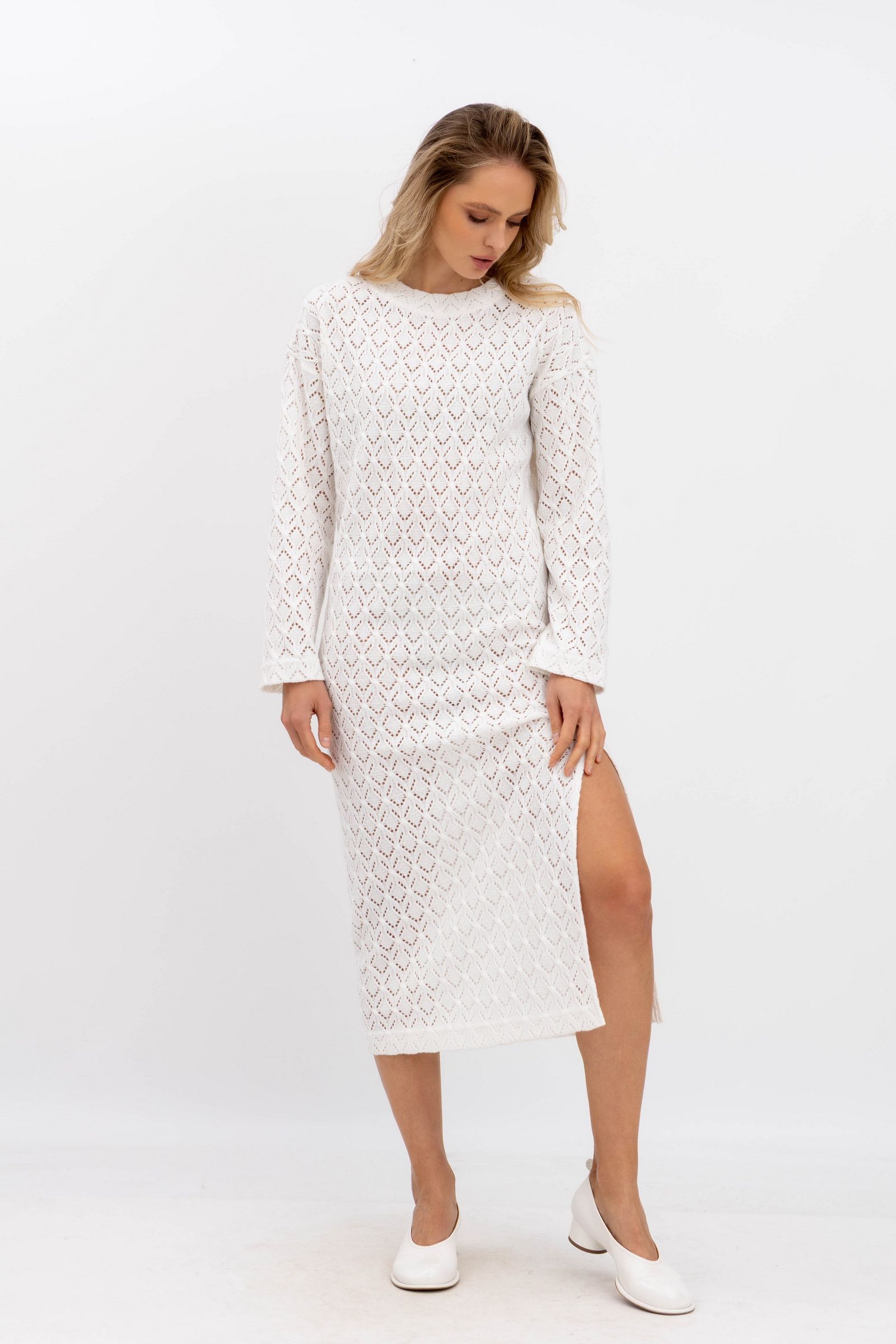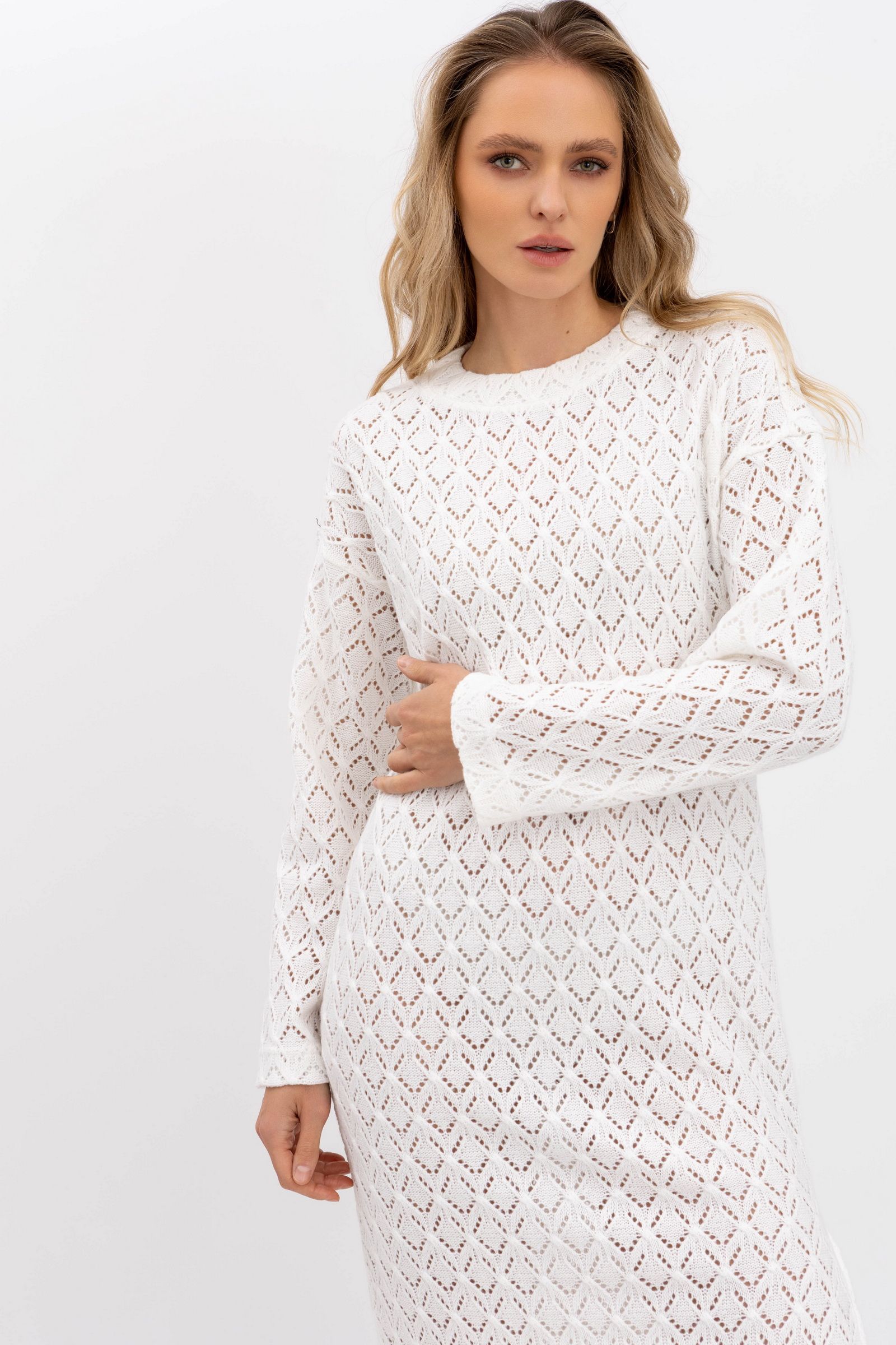 Напіврозора трикотажна сукня молочного кольору Андрус - ваш секрет елегантності