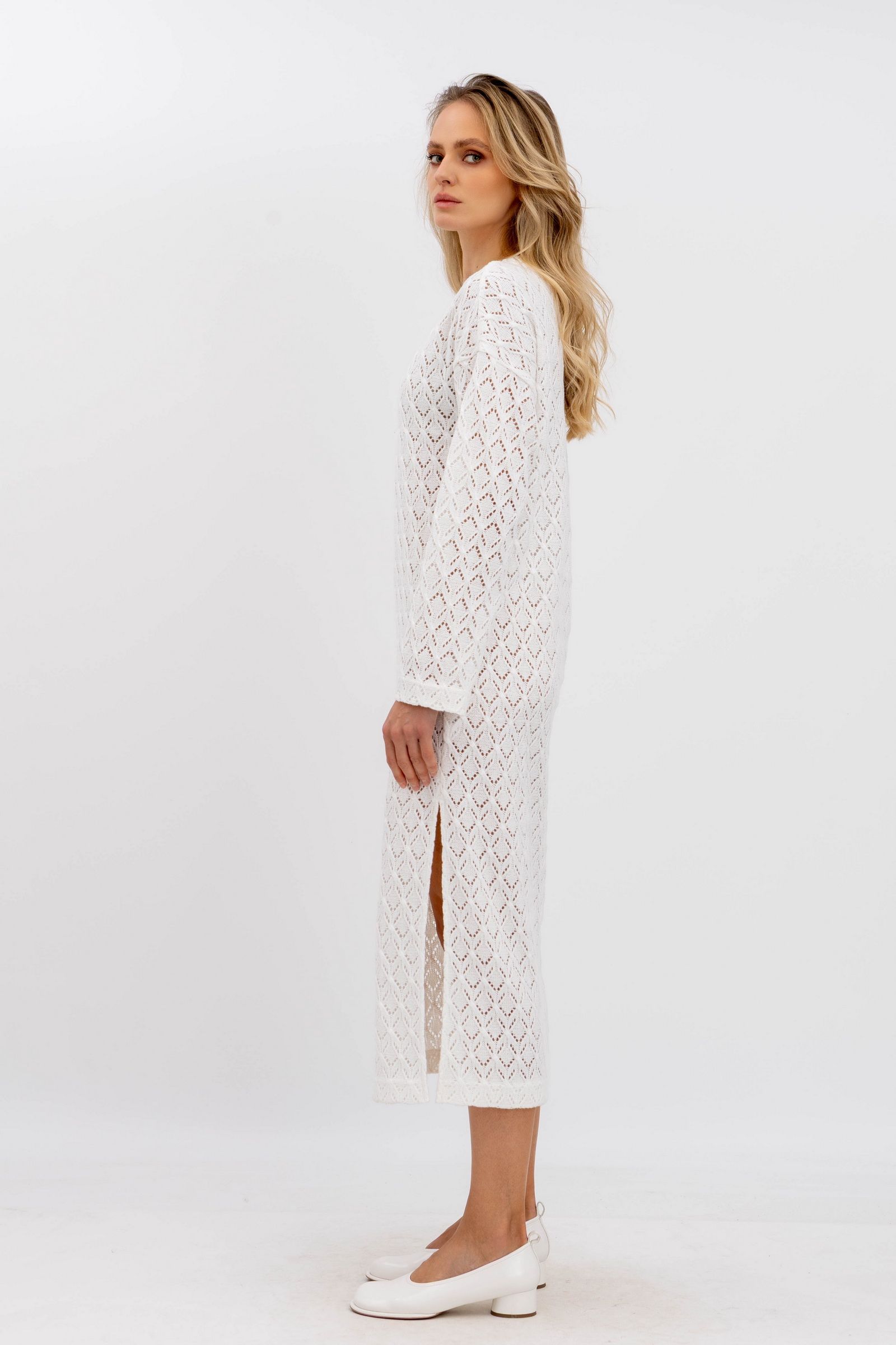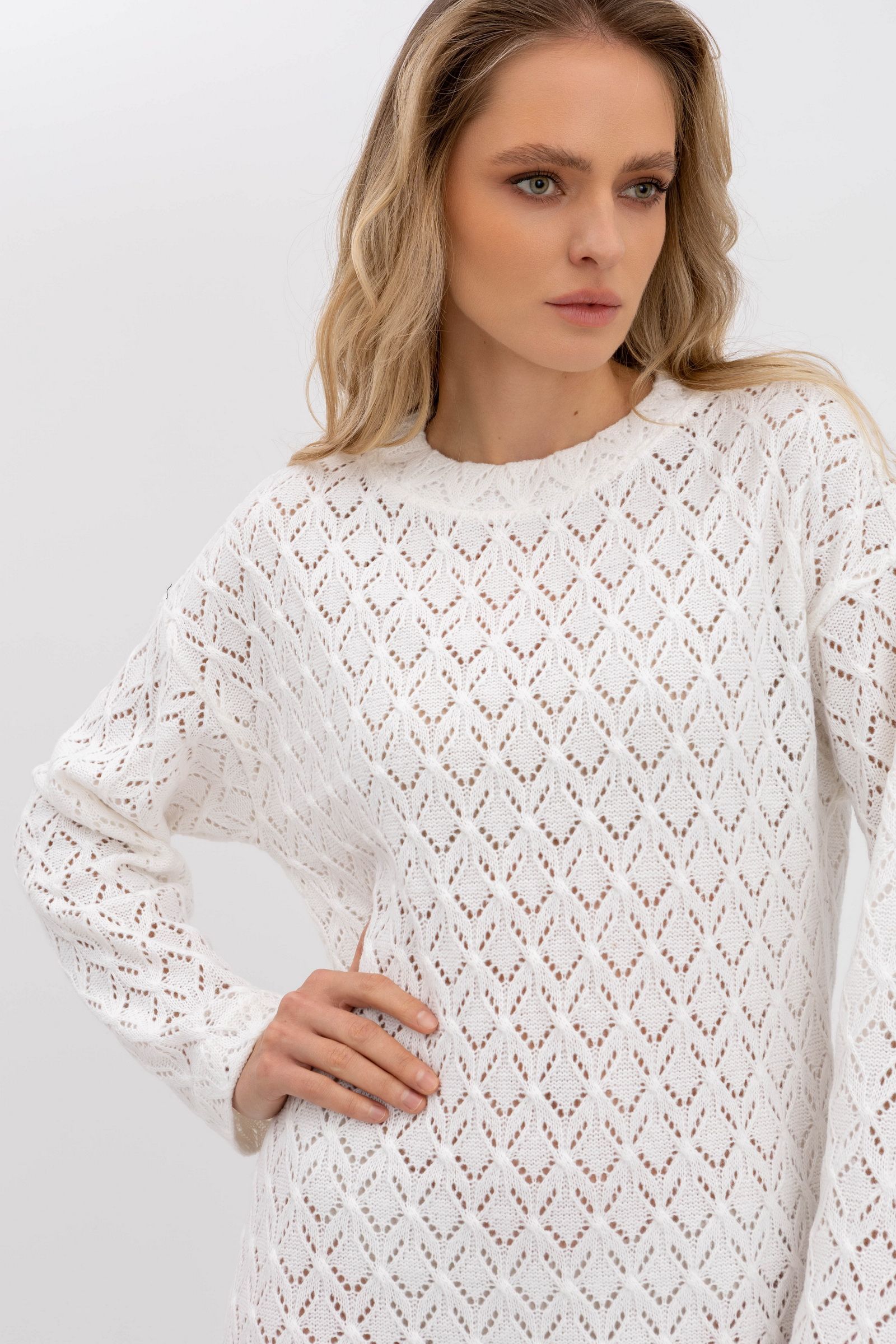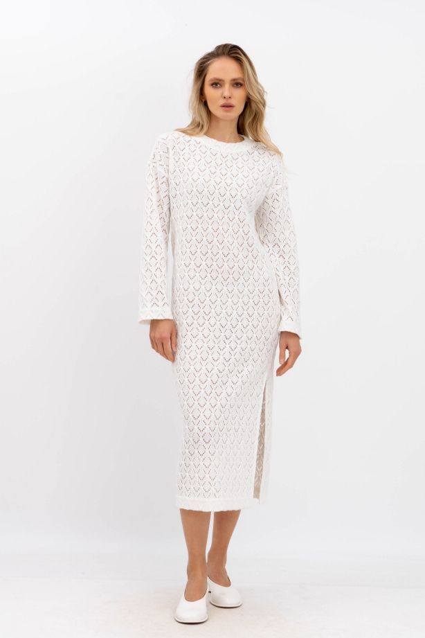 Напіврозора трикотажна сукня молочного кольору Андрус - ваш вибір для особливих випадків