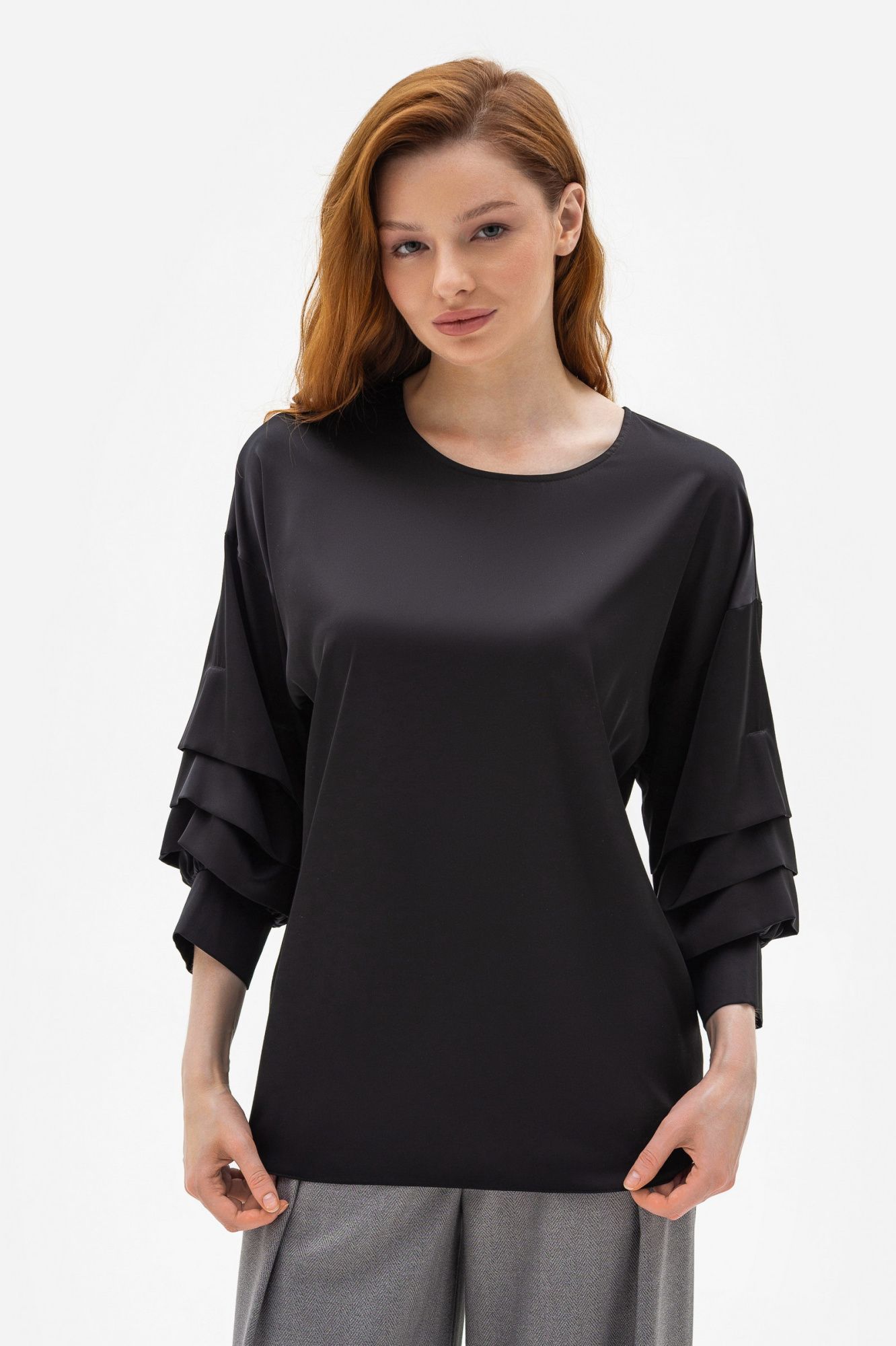 Шовкова блуза чорного кольору Міджи 205 - з високоякісних матеріалів