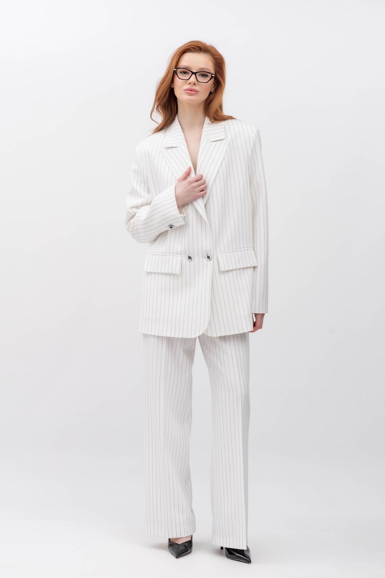 Стилістична порада від Lesia: Створюйте бездоганний костюмний ансамбль, комбінуючи штани з жакетом «Ренті», виготовленим з аналогічної тканини.