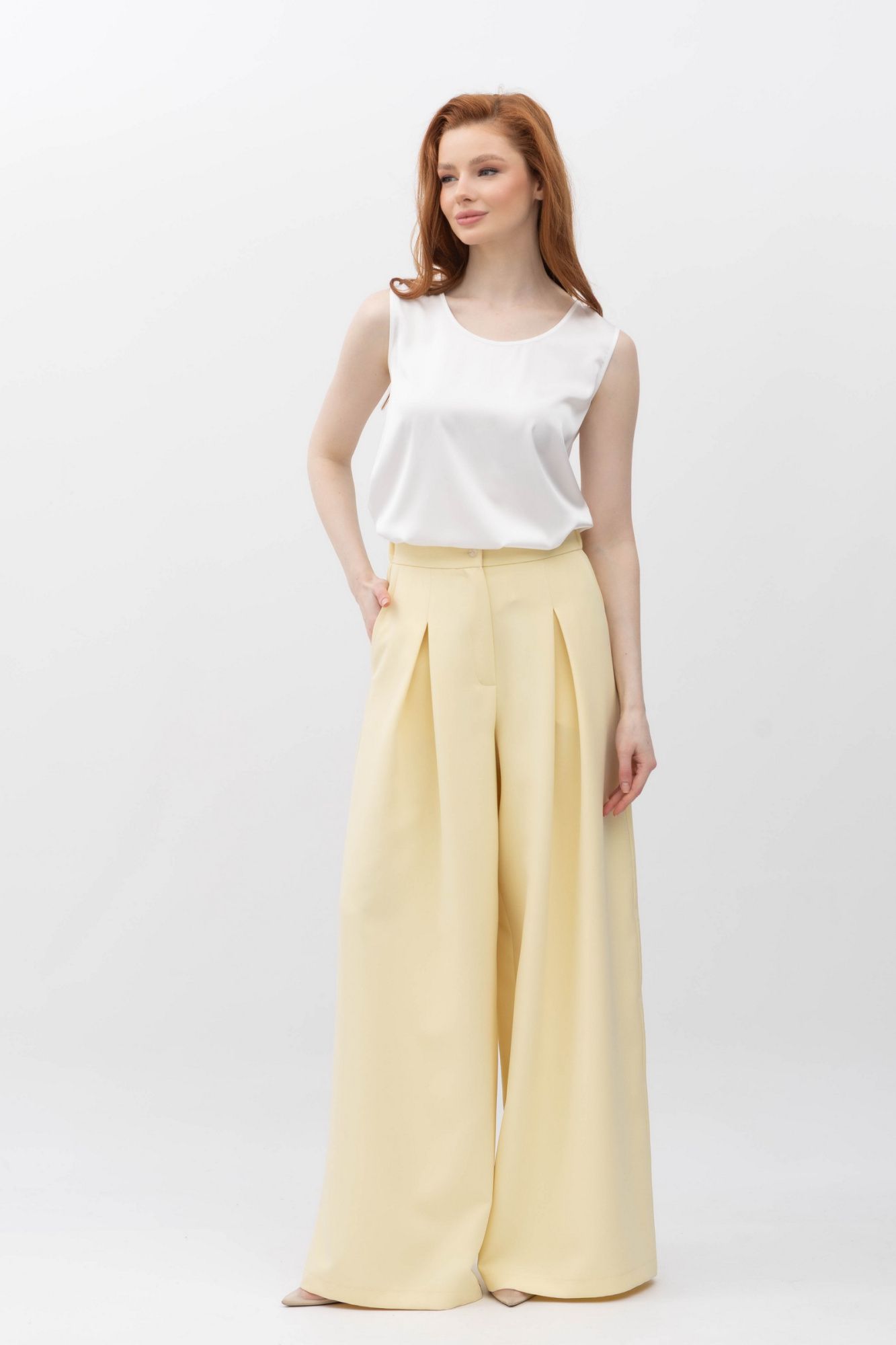 Широкі брюки з костюмної тканини жовтого кольору Ліама 02 - будьте в тренді кожного дня