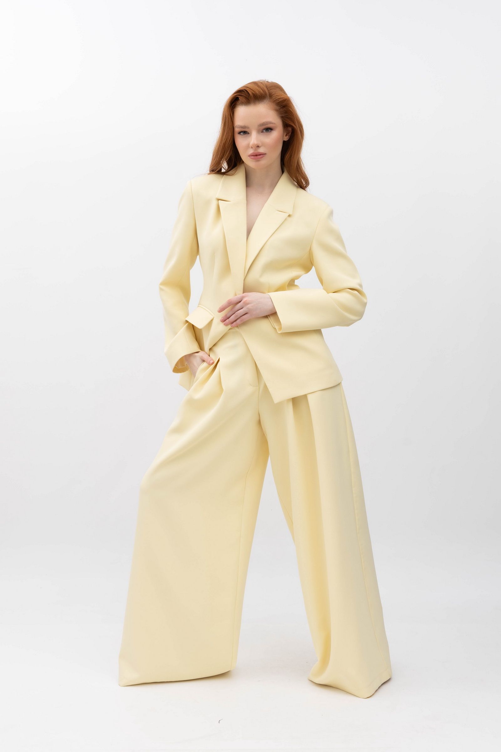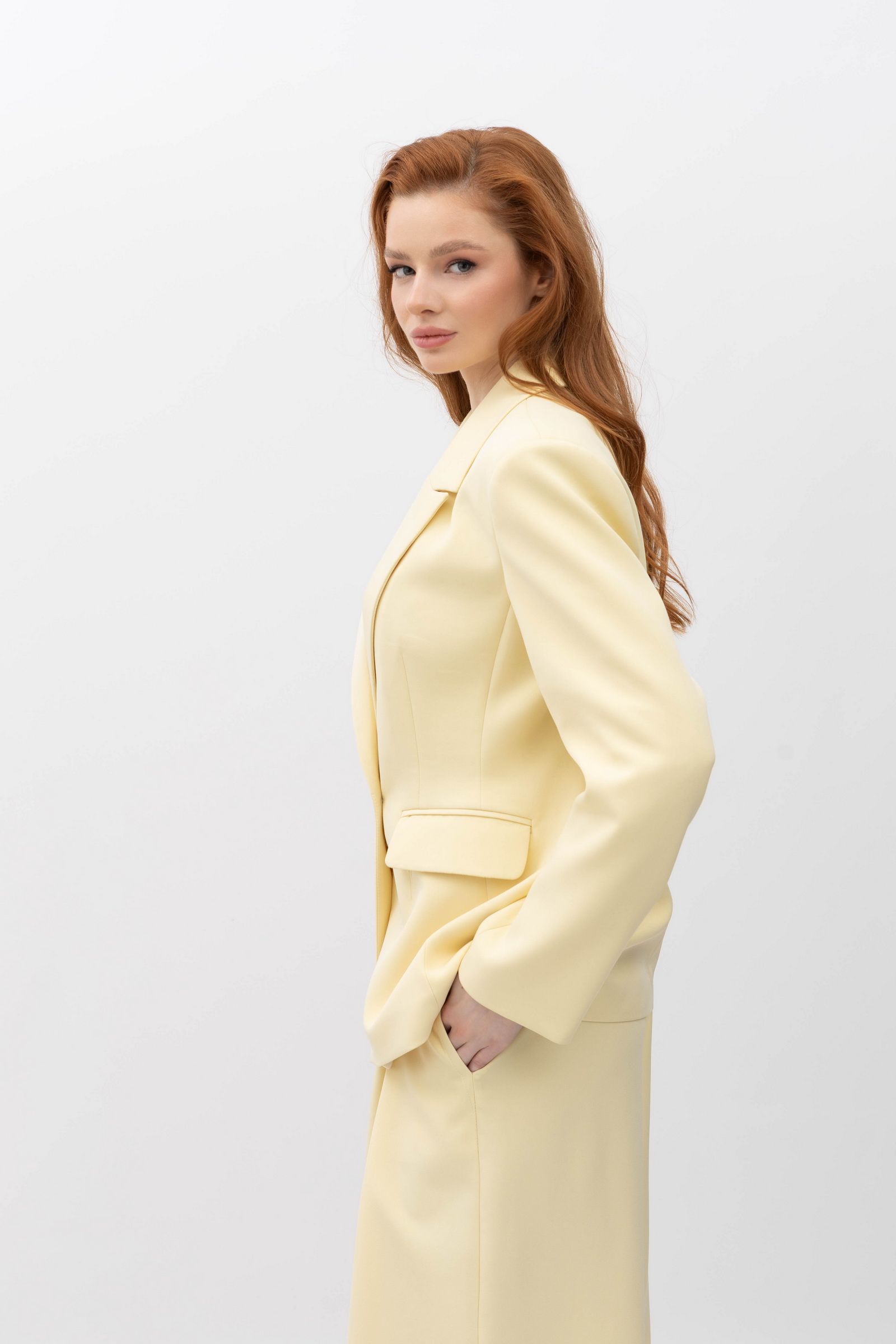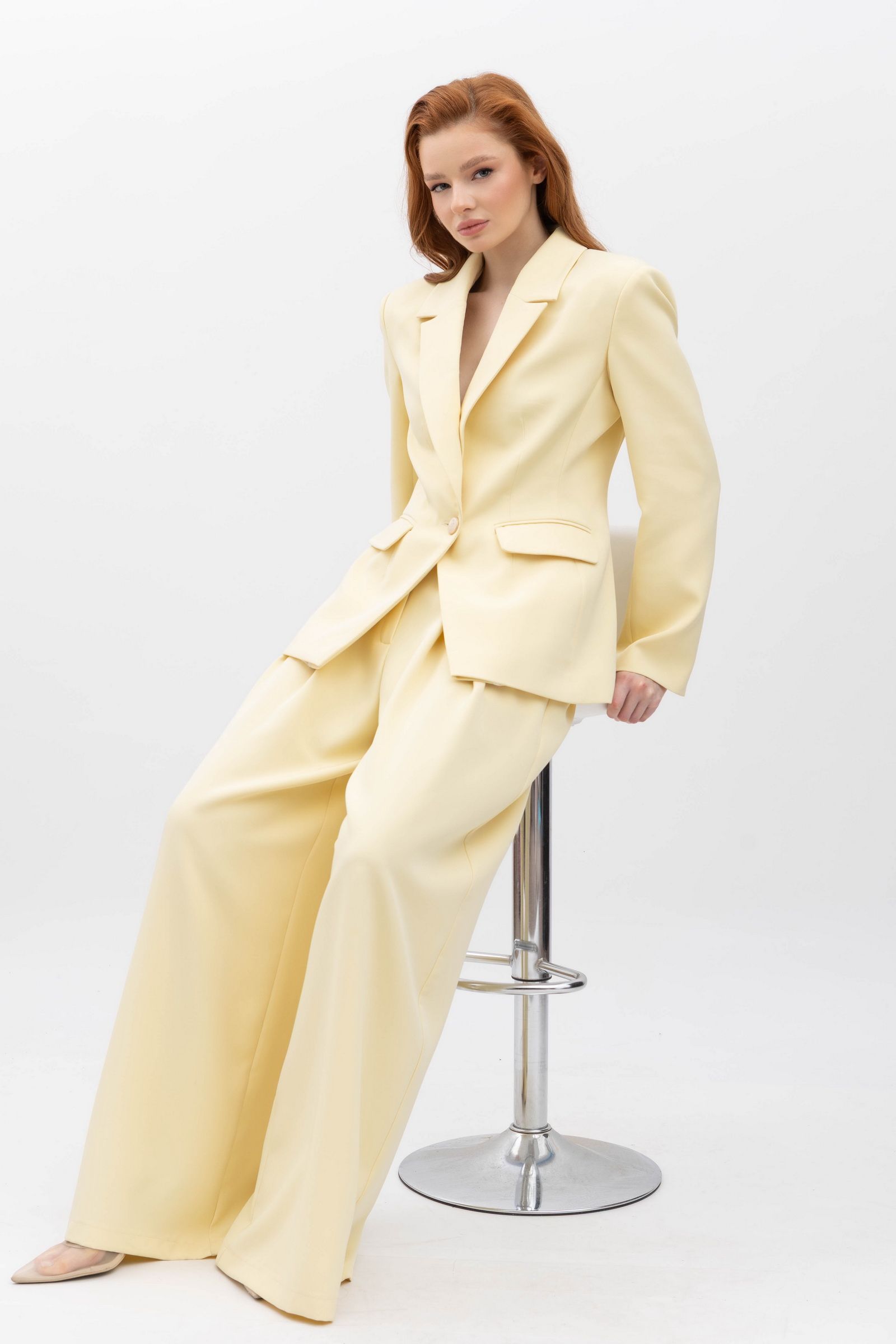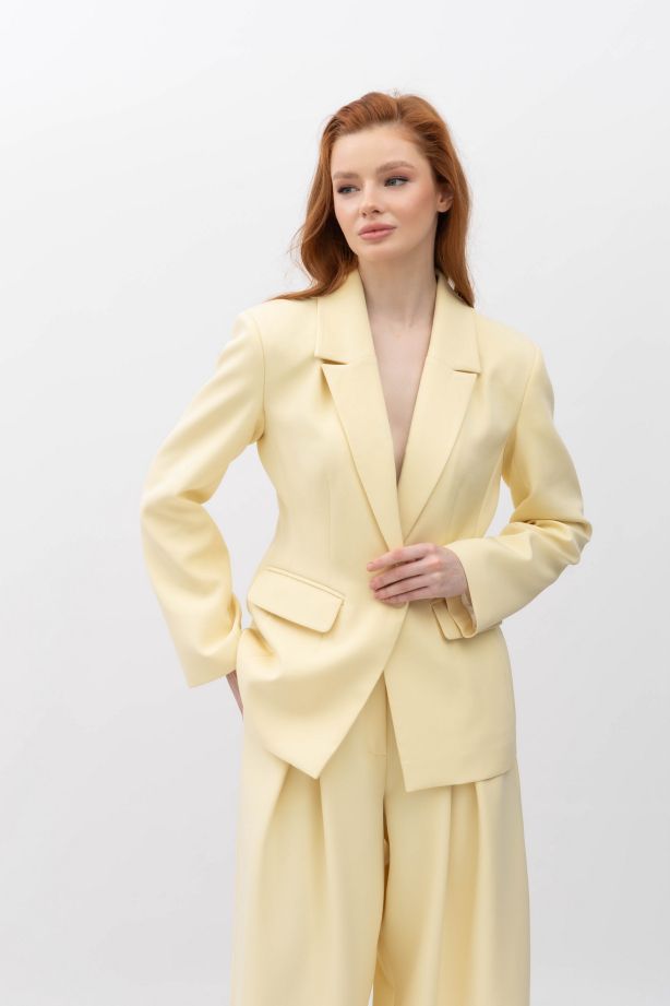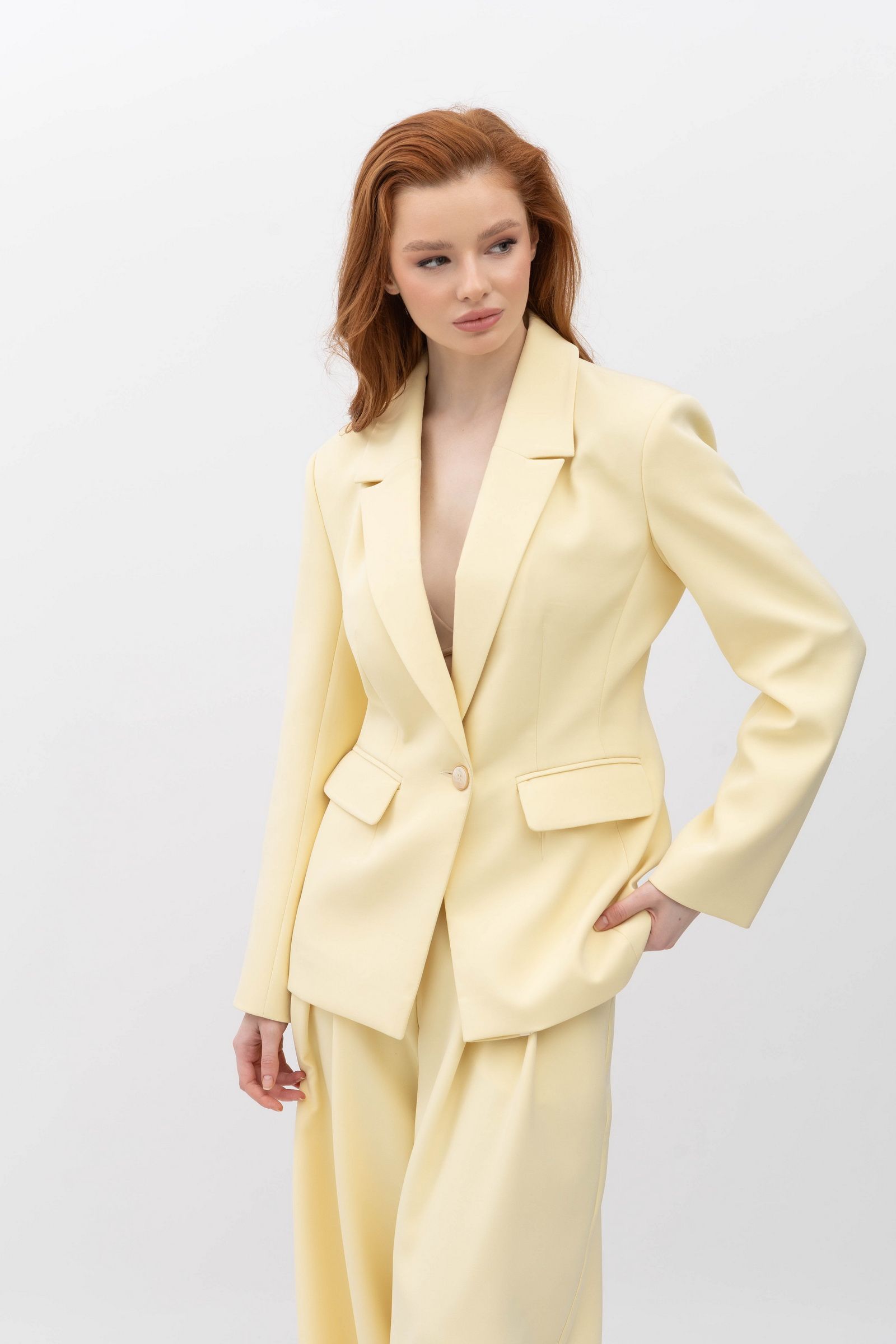 Однобортна застібка на один ґудзик створює чисту лінію силуету. Жакет стане базовим елементом вашого гардероба, легко комбінуючись як із класичними штанами палаццо, так і з джинсами або спідницями.