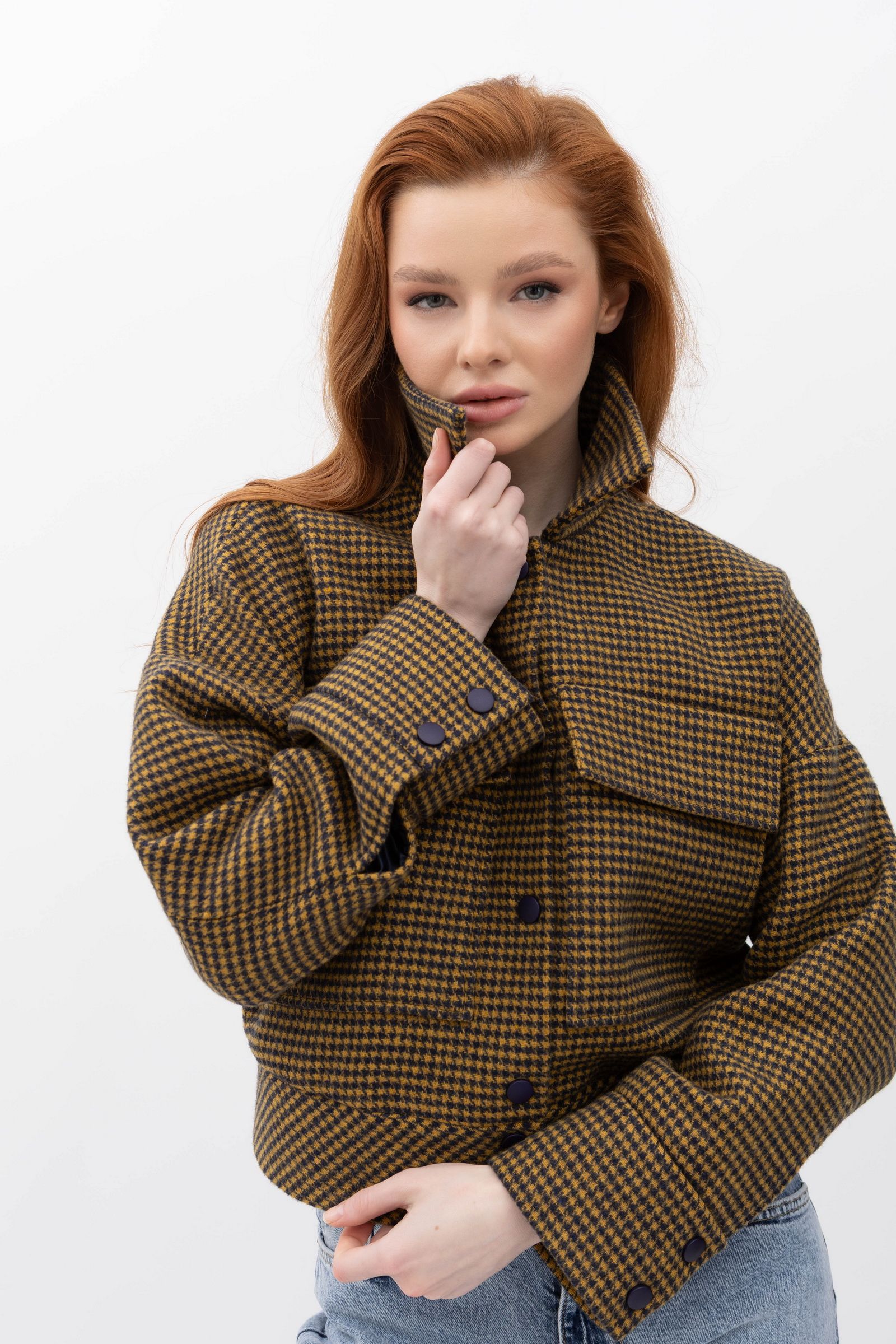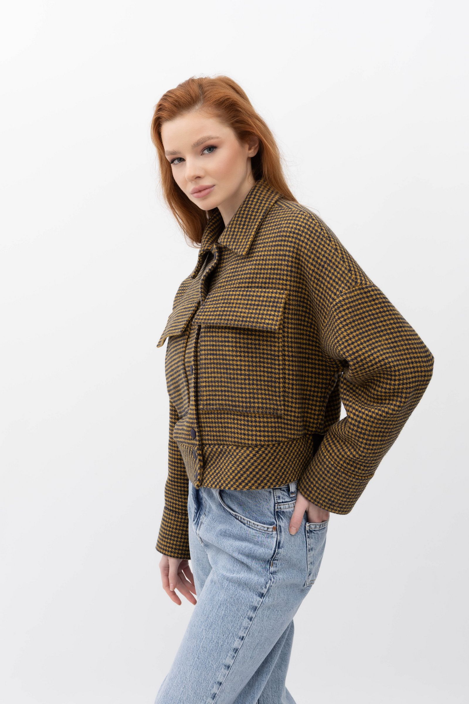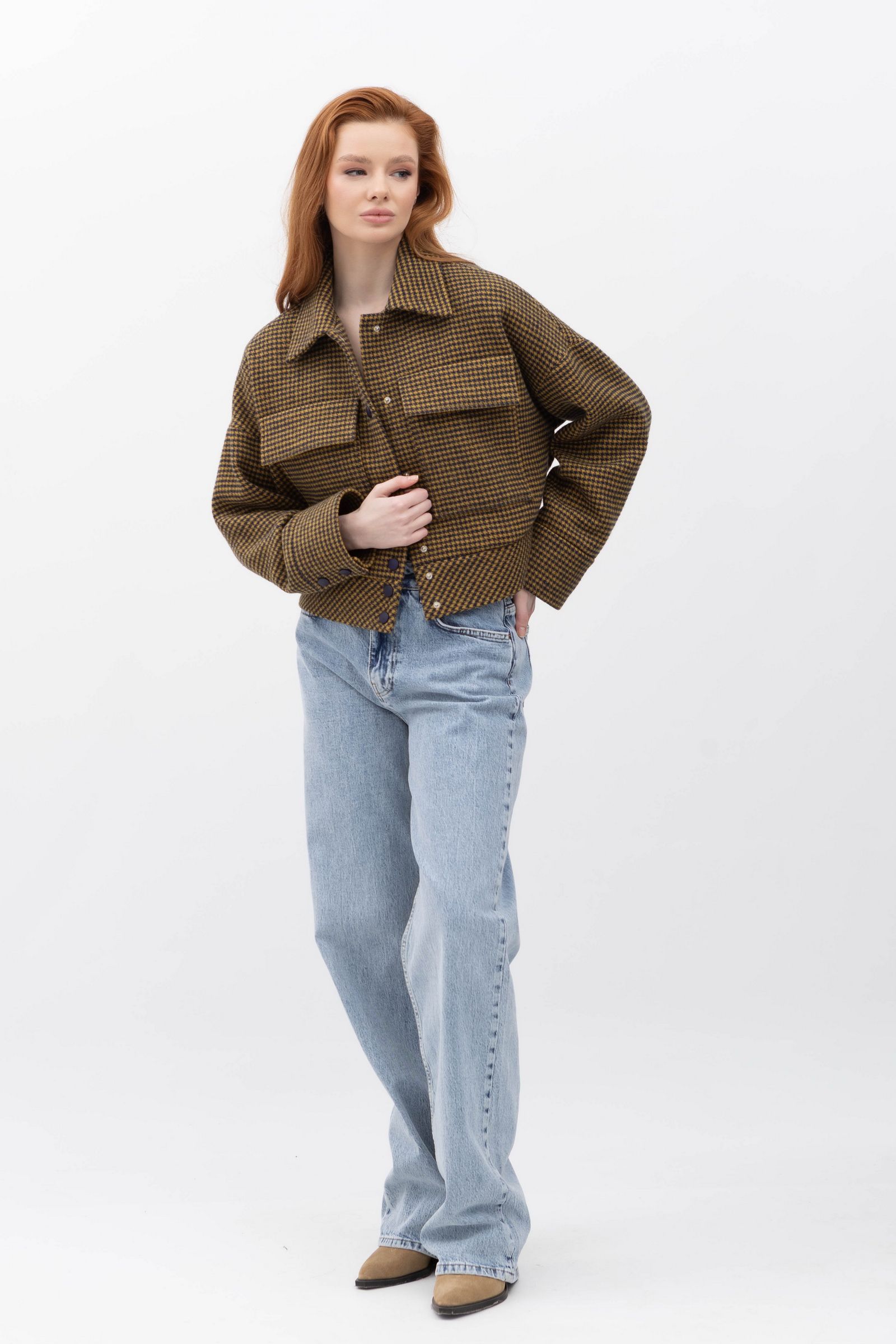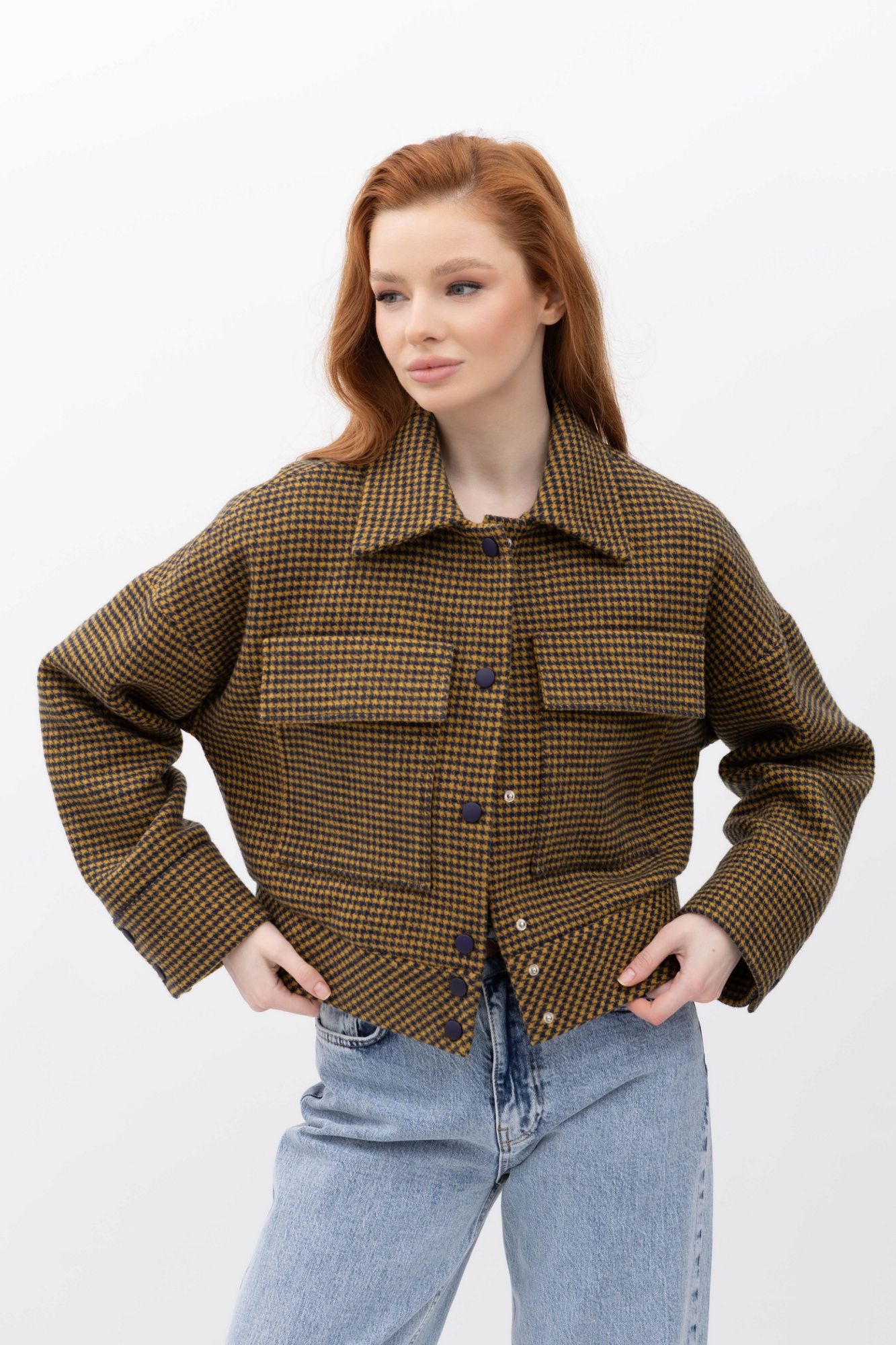 На грудях розташовані функціональні кишені з декоративними лісточками. Довгі вільні рукави завершуються широкими манжетами, які надійно фіксуються двома кнопками. Центральна планка на кнопках забезпечує зручність та додає моделі сучасного вигляду.