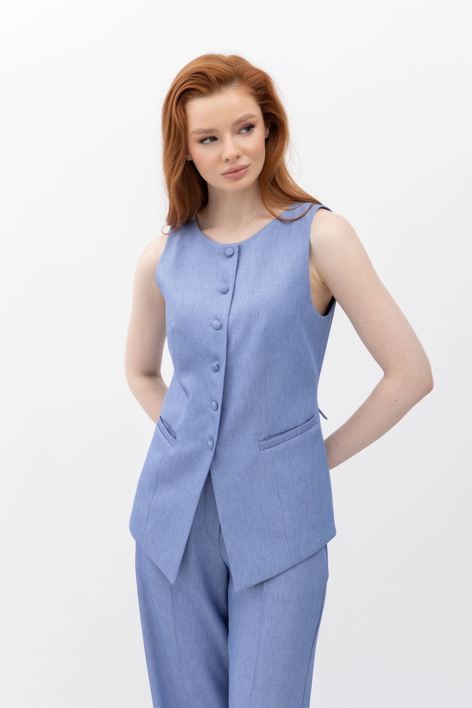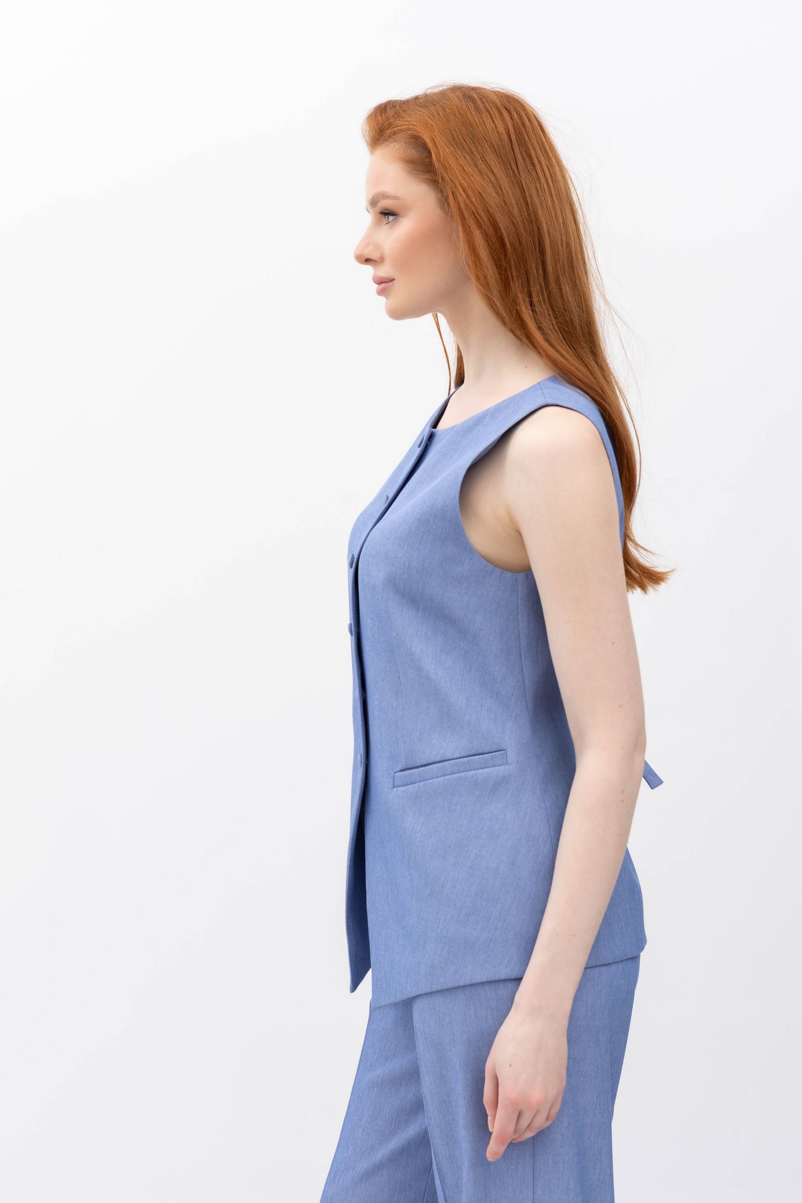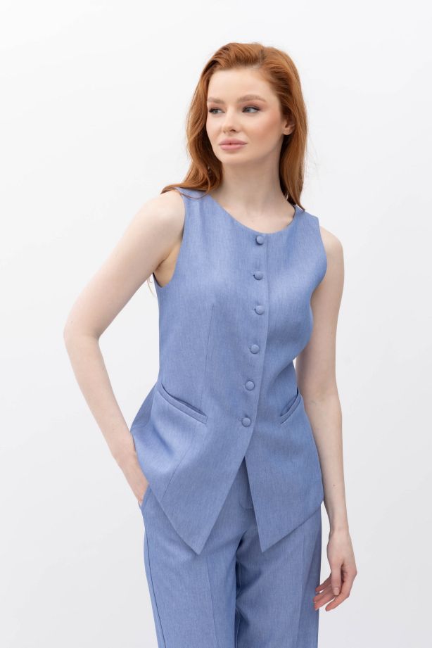Жилет з костюмної тканини блакитного кольору Феліна 1 - ваш вибір для стильного життя