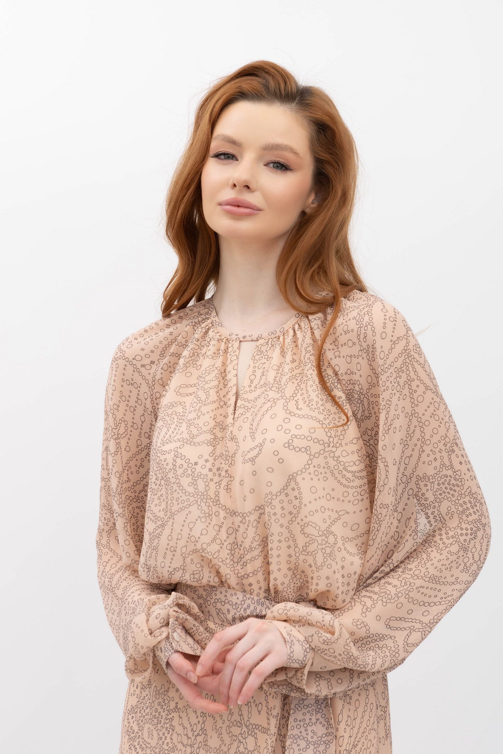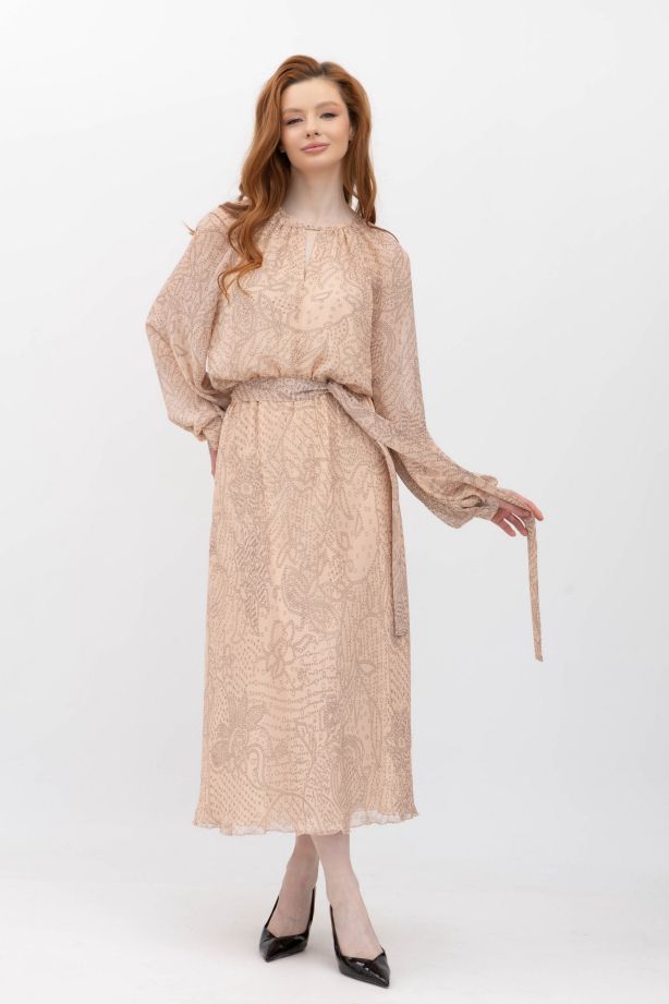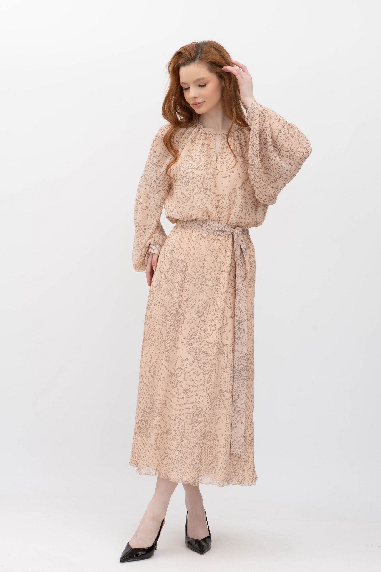 Шифонова сукня міді бежевого кольору Дорота 01 - будьте в тренді кожного дня