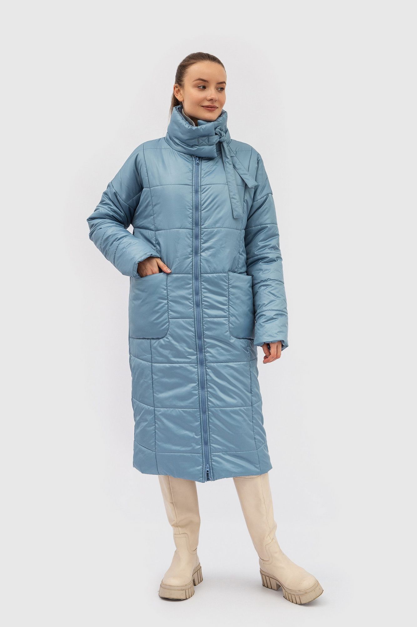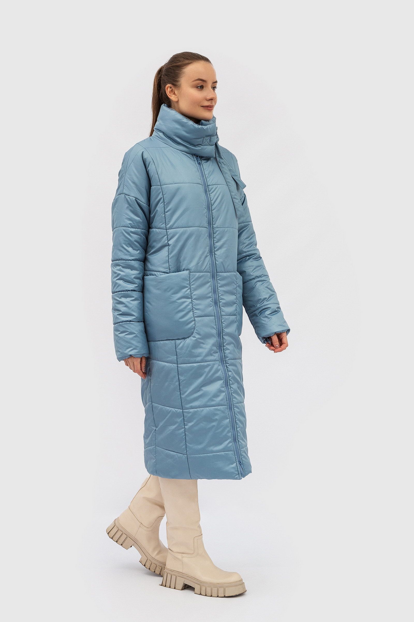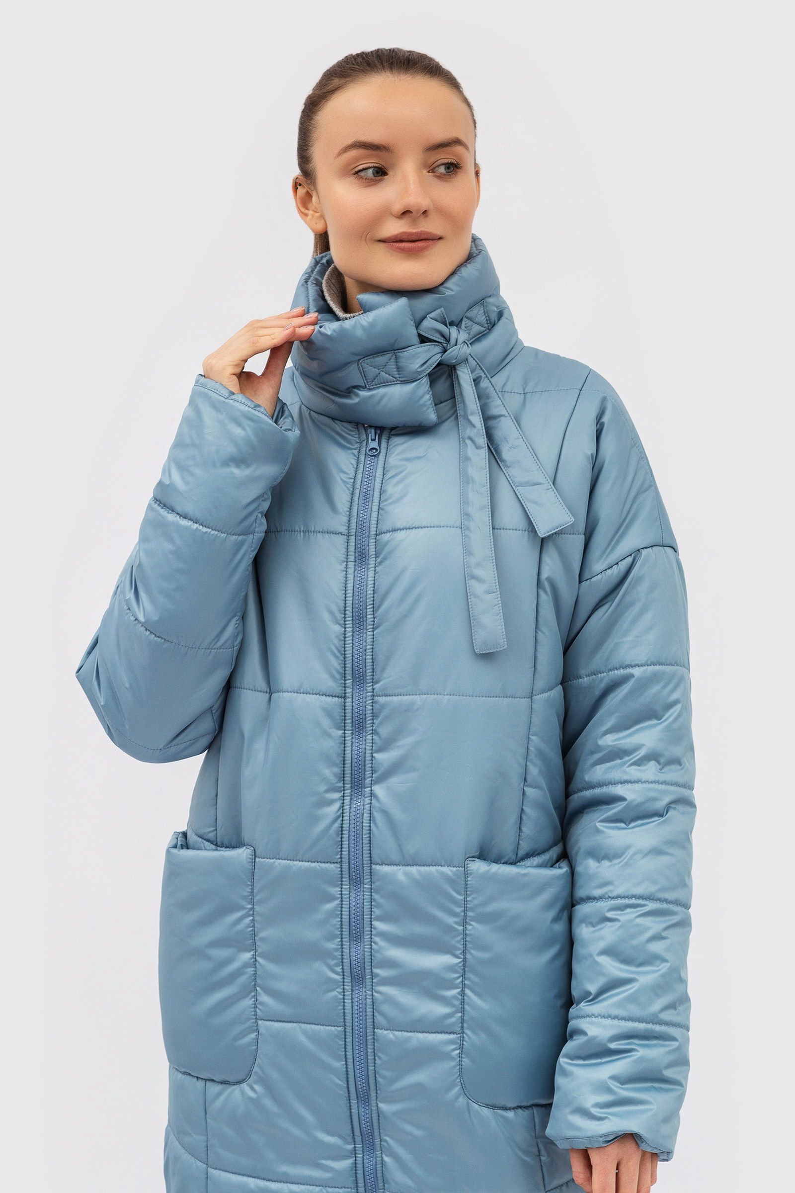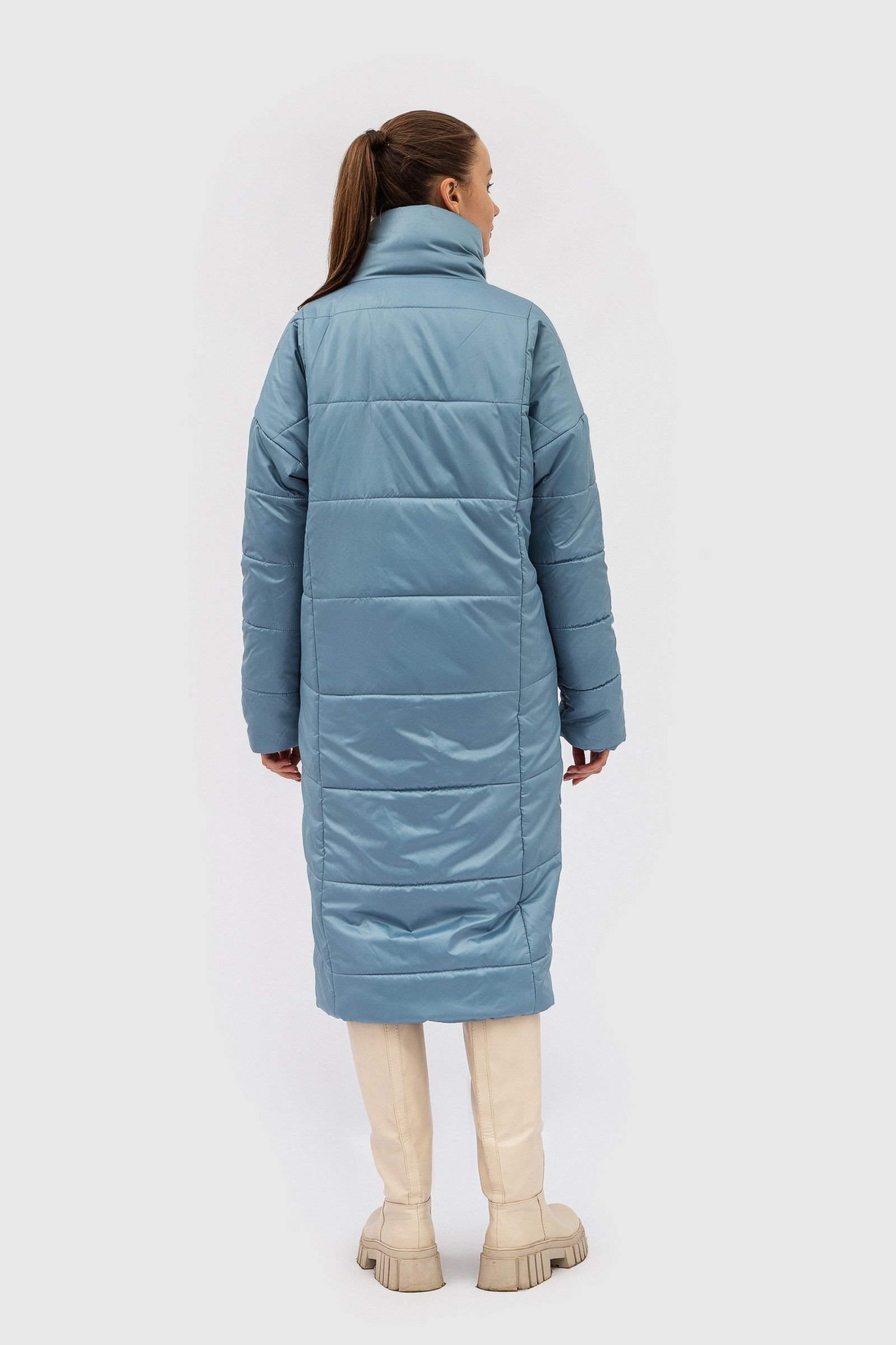 Осіннє зимове пальто блакитне зі стьобаної тканини з комірцем стійкою Ладре 01 - гармонія стилю та комфорту