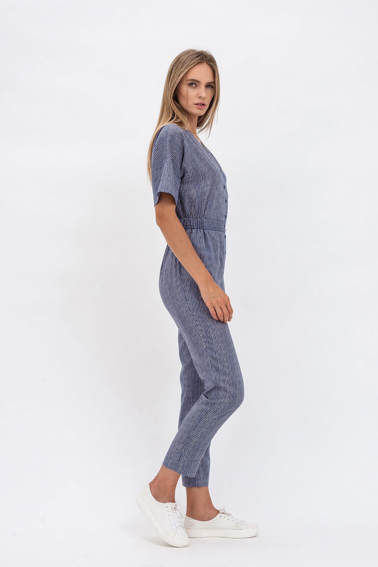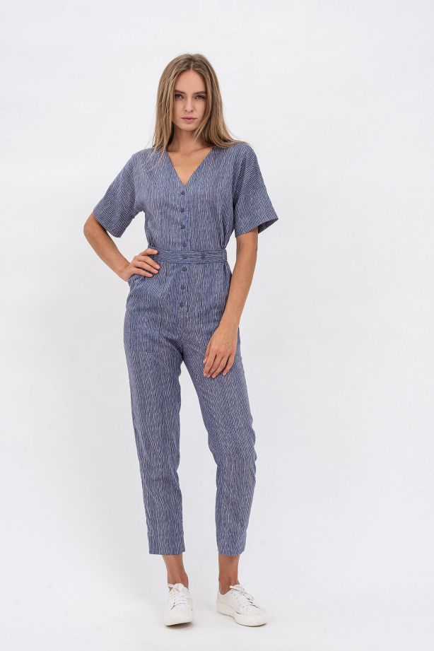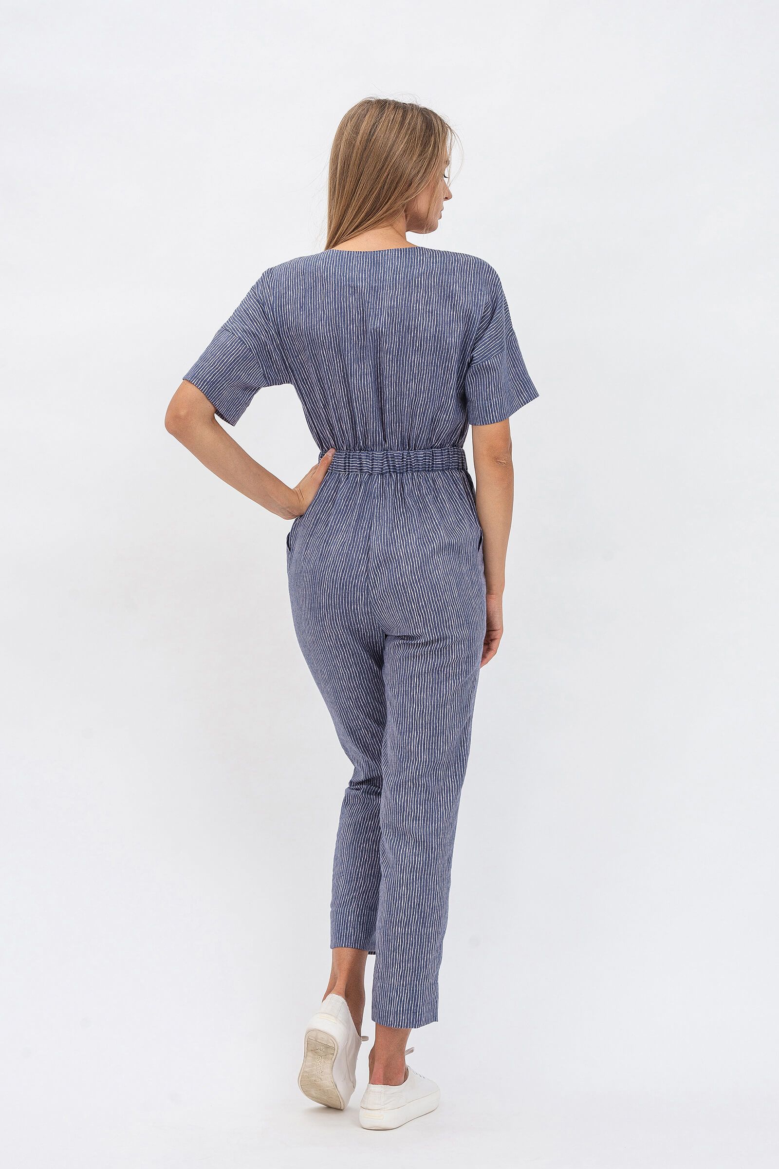 Літній комбінезон з льону зі смугастим принтом та довгою штаниною для жінок Ніхоль - з відмінним співвідношенням ціни та якості