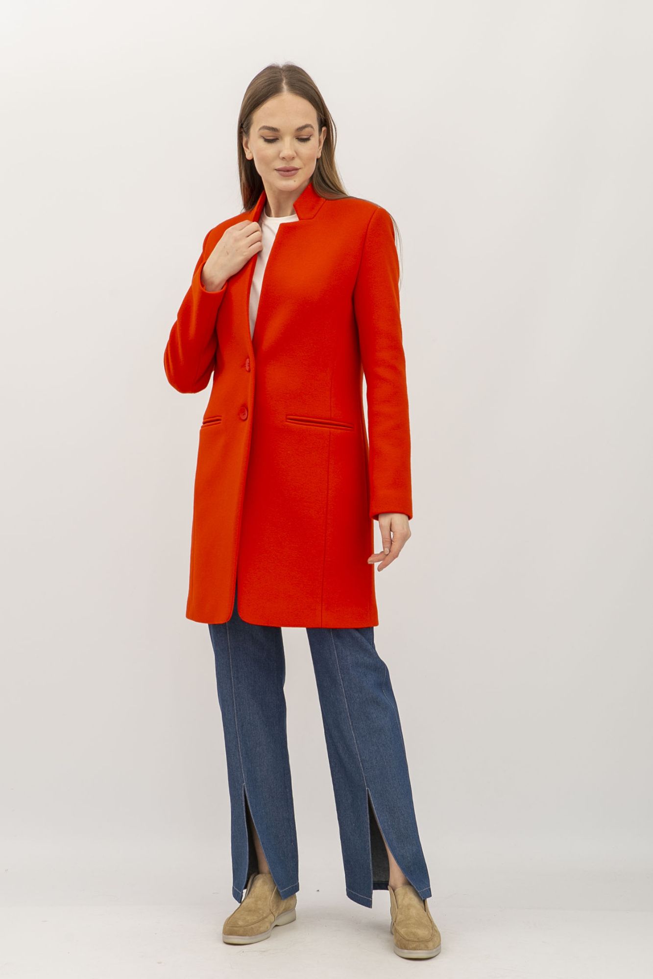Класичне пальто коралового кольору напівприлеглого силуету Клєра - для створення неповторних образів