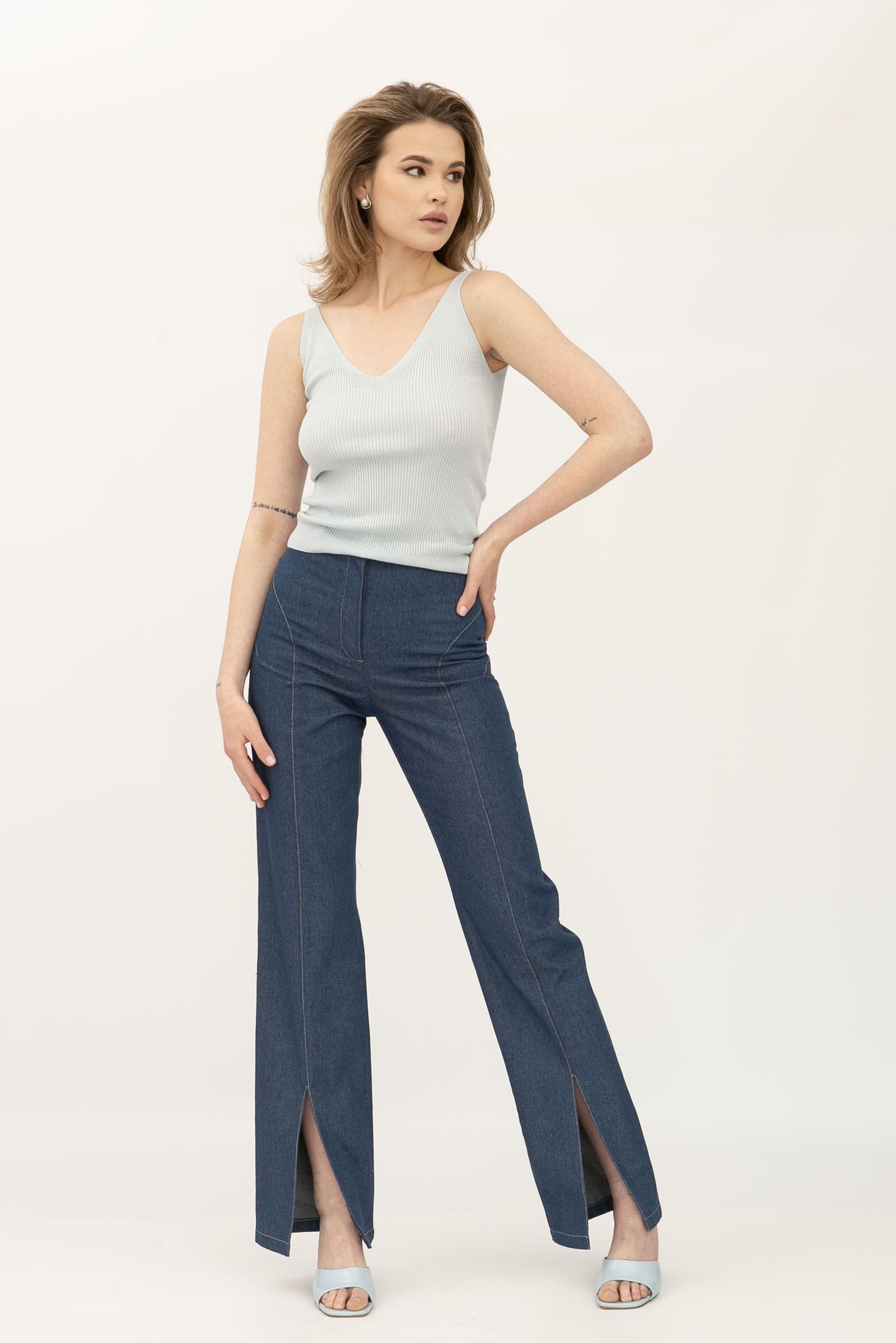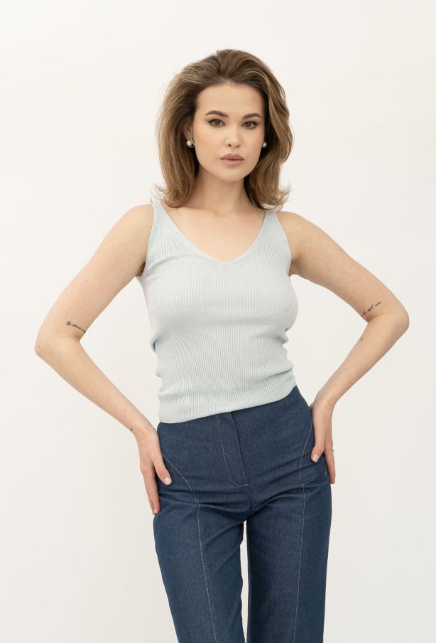 Блакитна майка в рубчик з глибоким вирізом 24100505 - ваш секрет елегантності