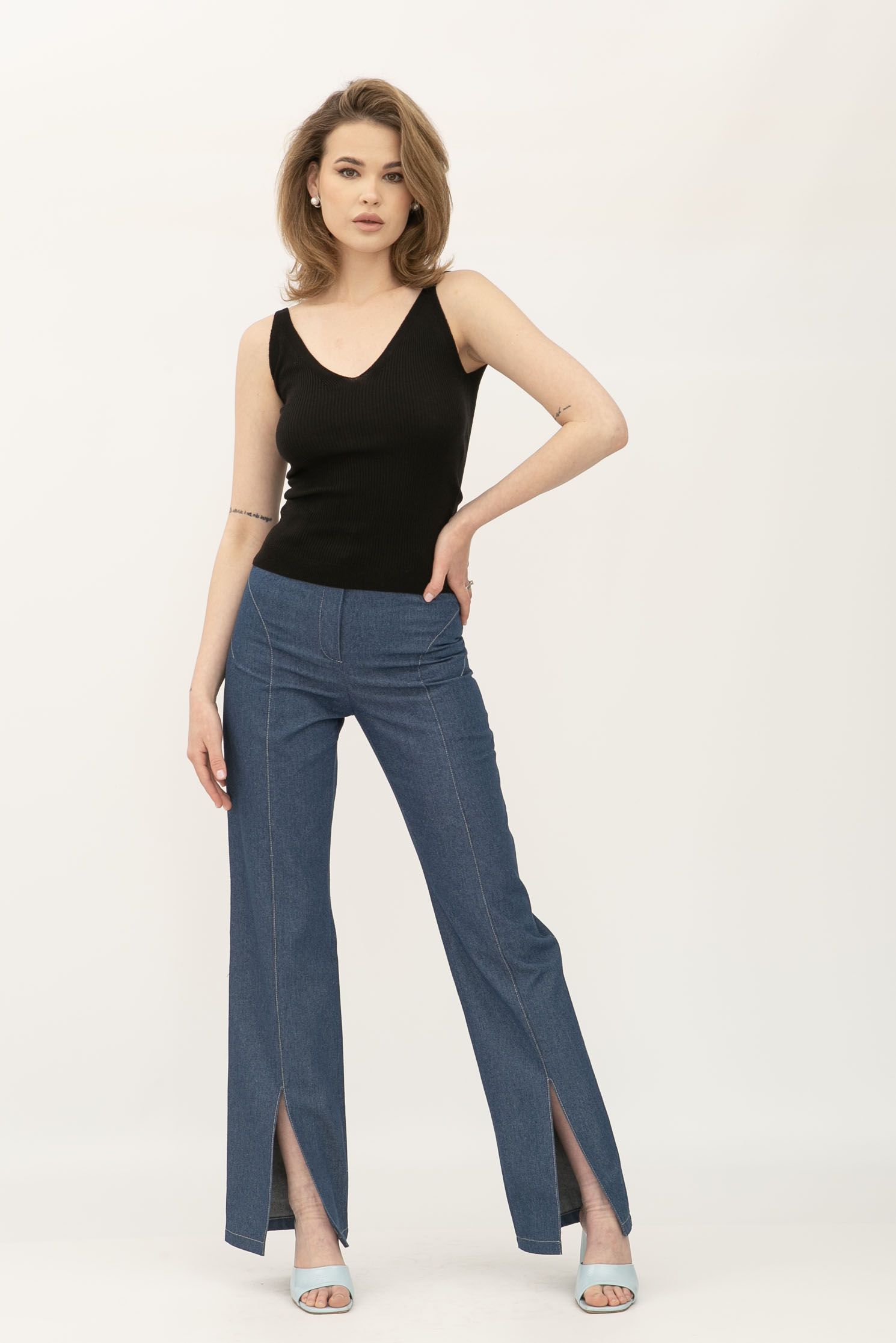Чорна майка в рубчик з глибоким вирізом 24100502 - гармонія стилю та комфорту