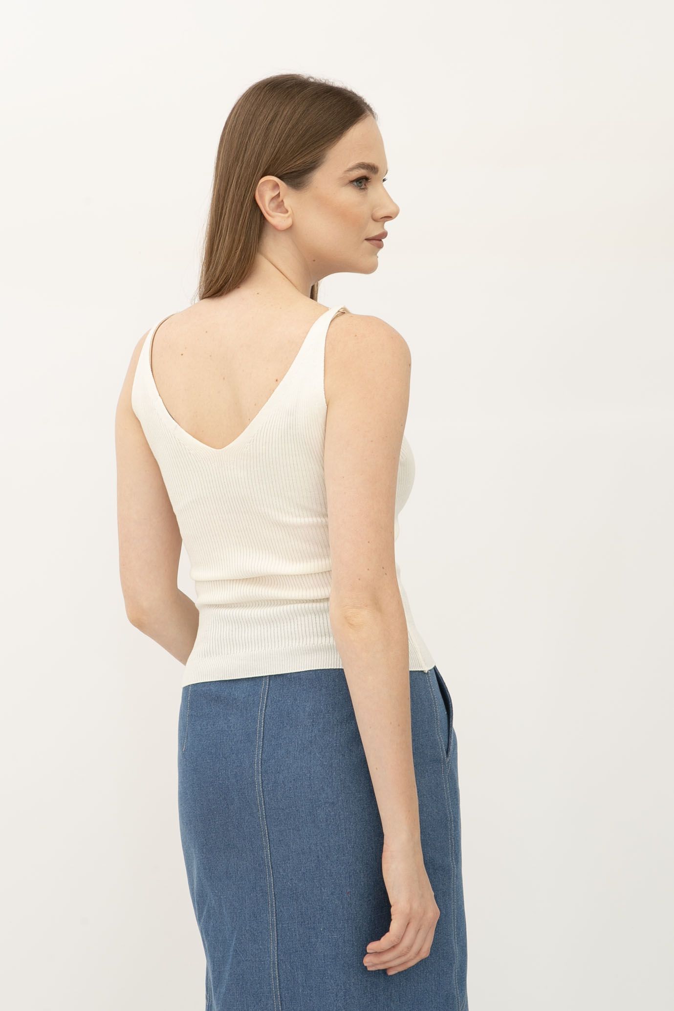 Молочна майка в рубчик з глибоким вирізом 24100501 - з різноманіттям кольорів та фасонів