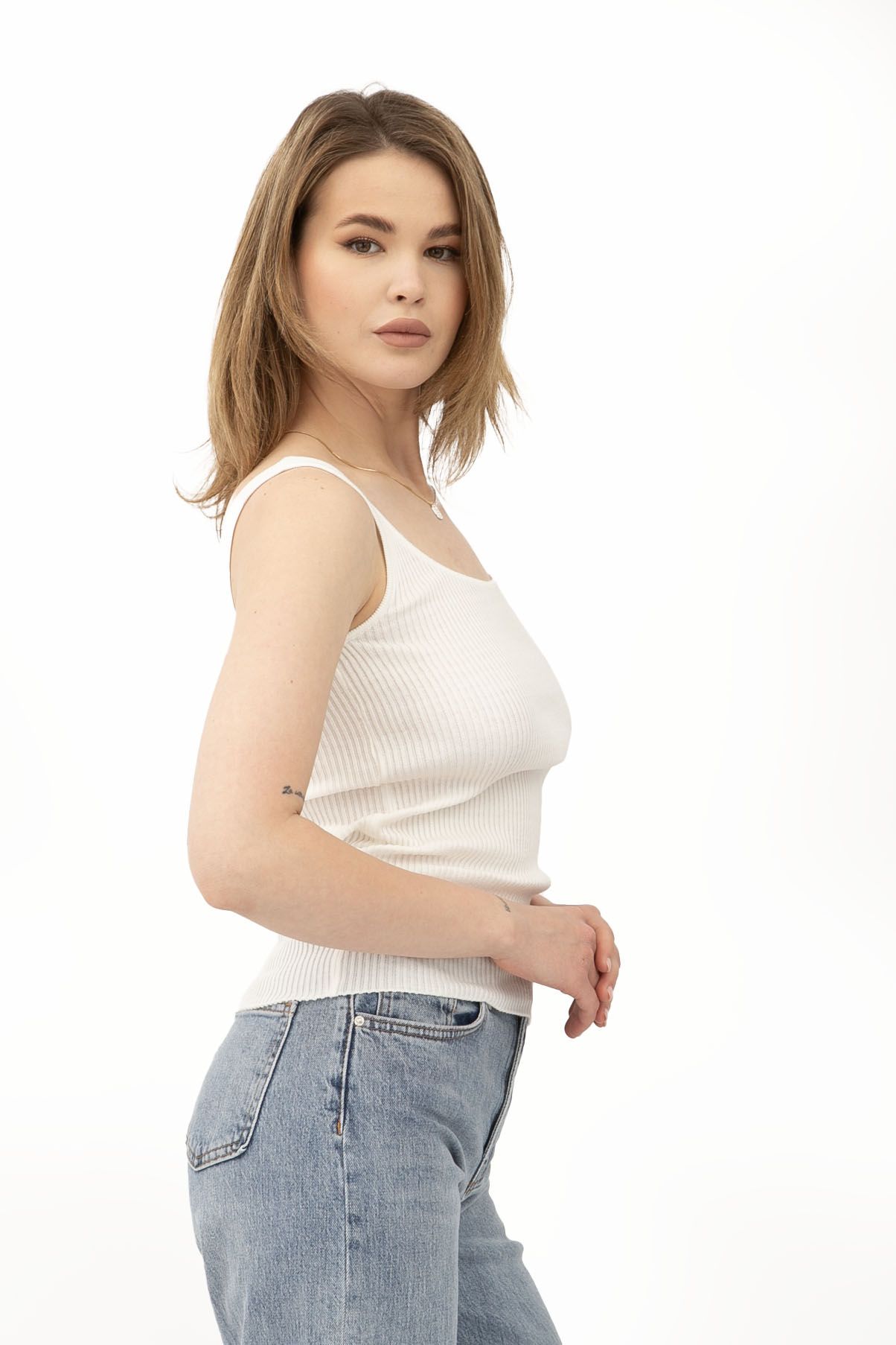 Молочна трикотажна майка в рубчик 24100401 - гармонія стилю та комфорту