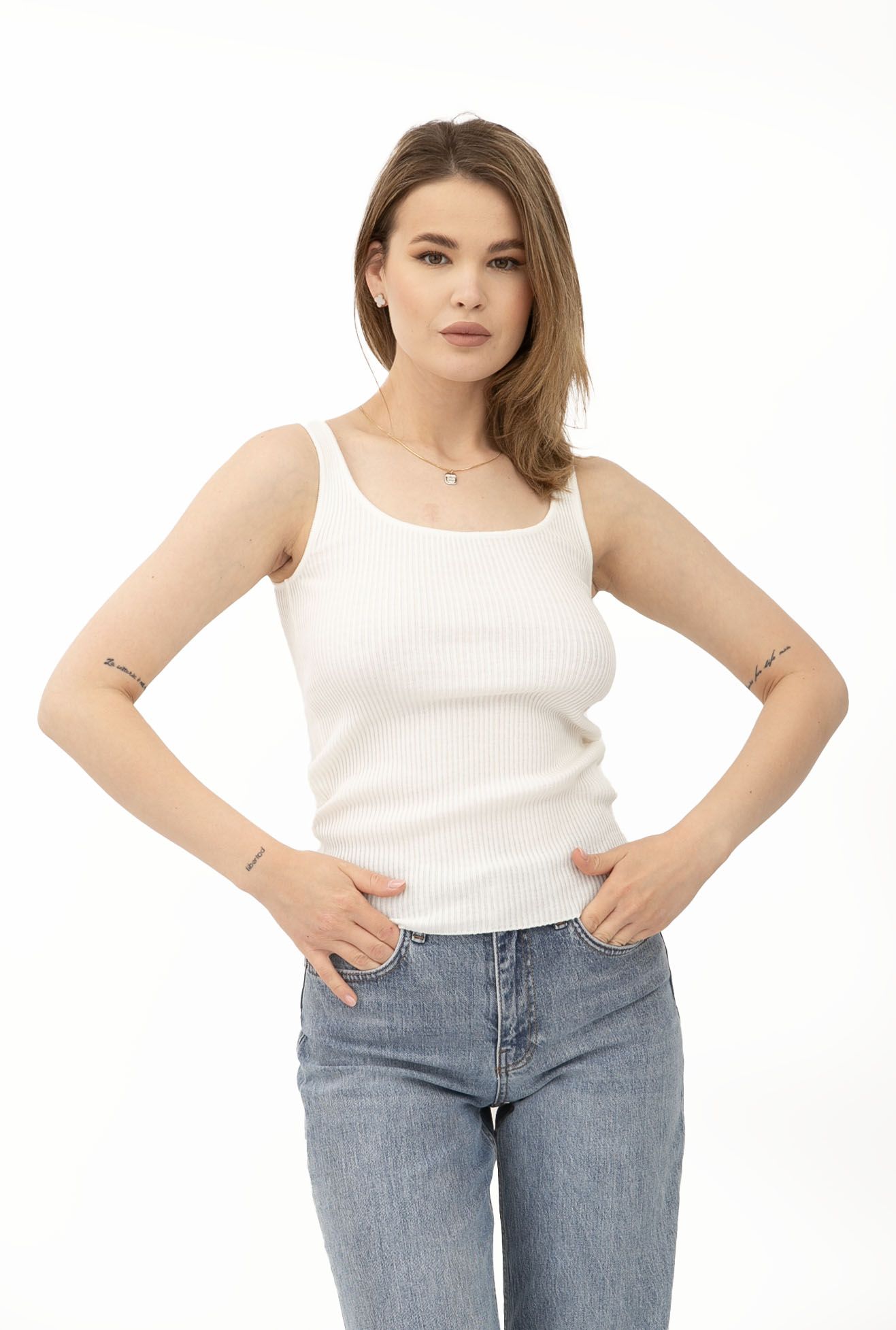 Молочна трикотажна майка в рубчик 24100401 - вишуканість і комфорт для кожної
