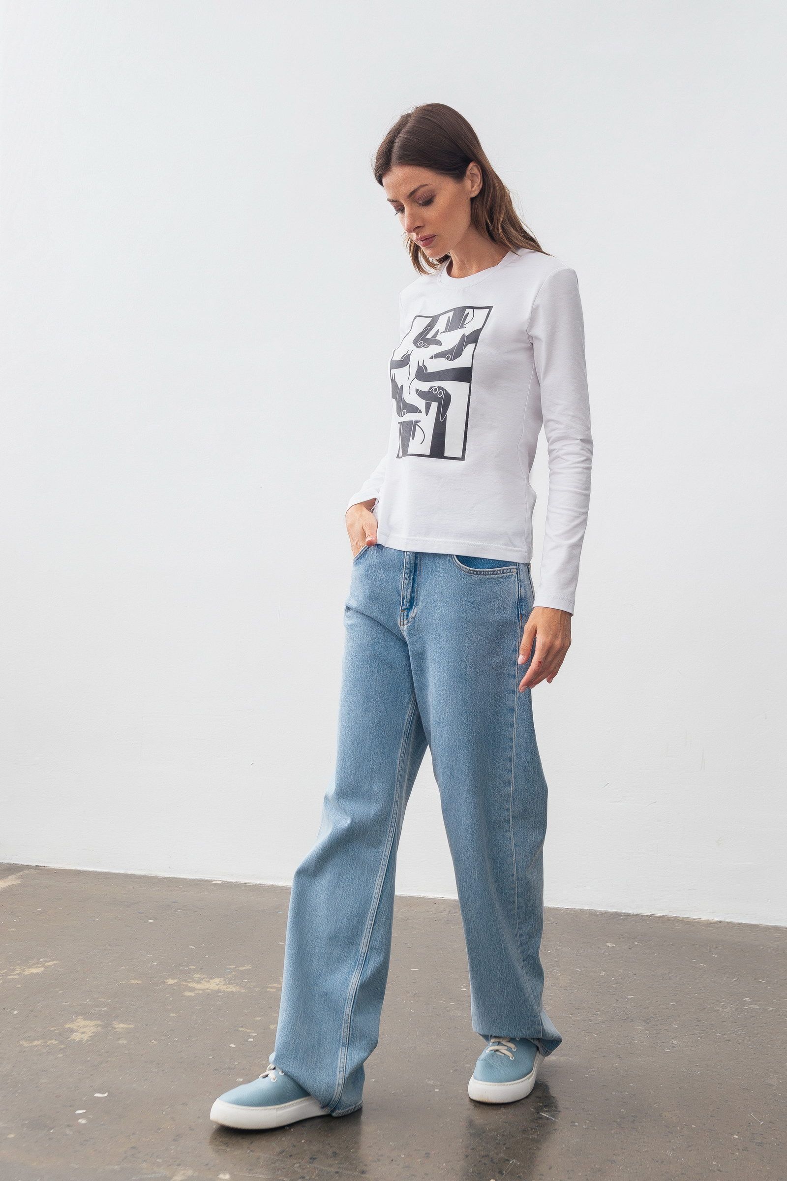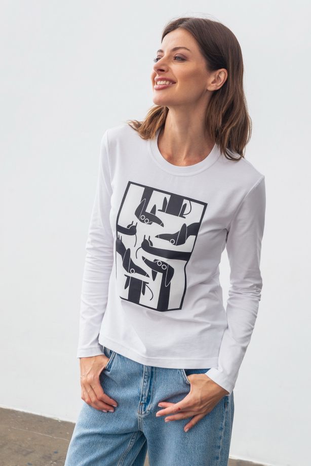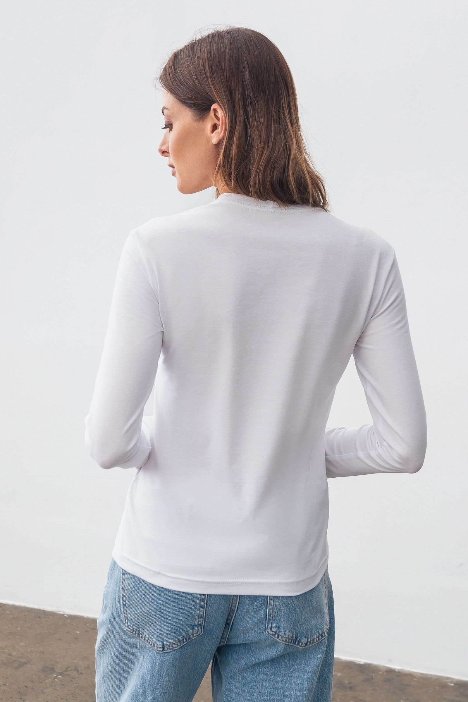 Трикотажний лонгслів білого кольору з округлою горловиною Мелік - будьте в тренді кожного дня