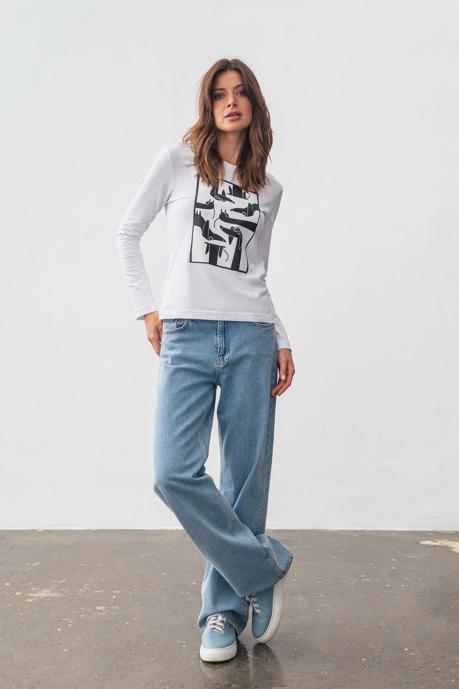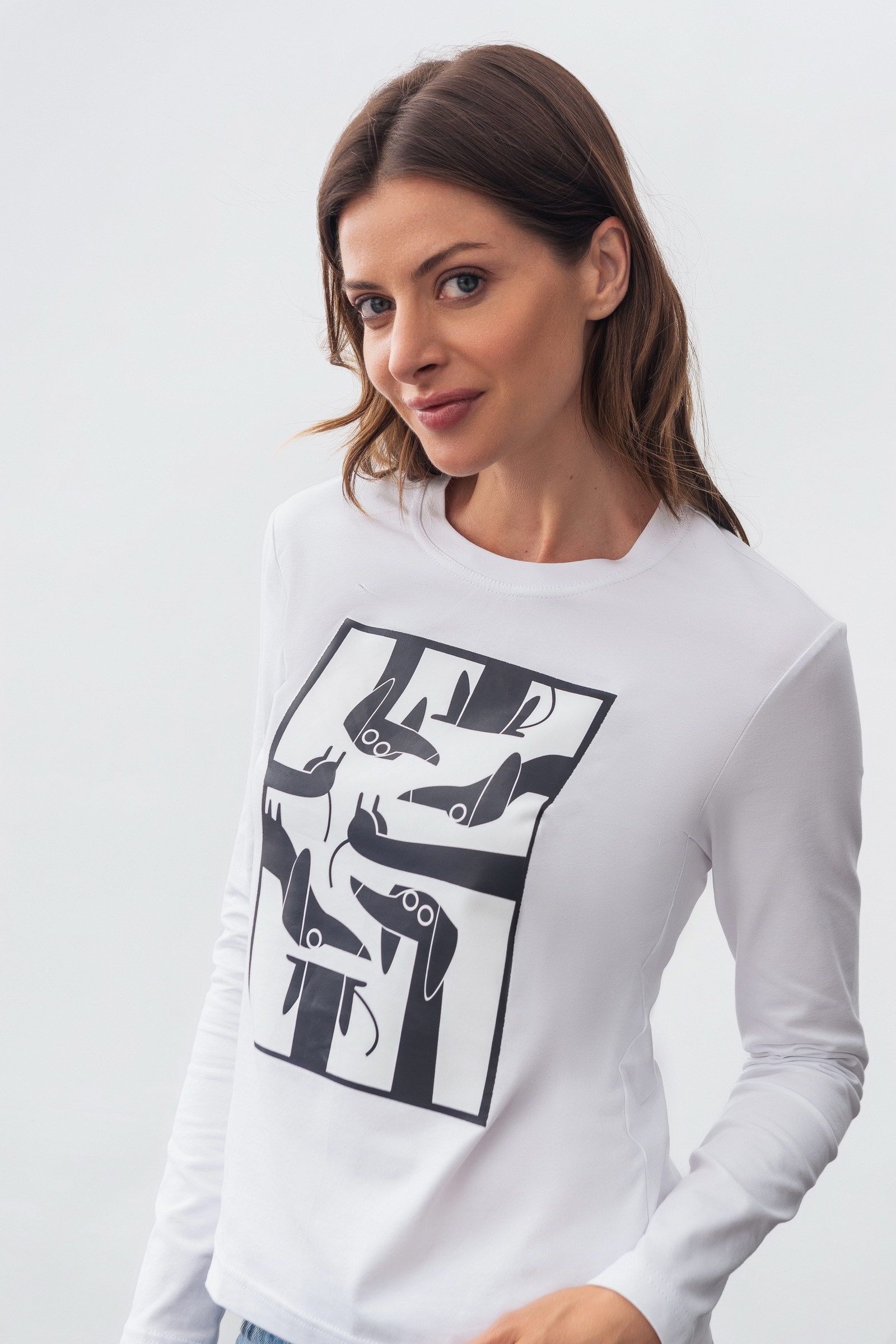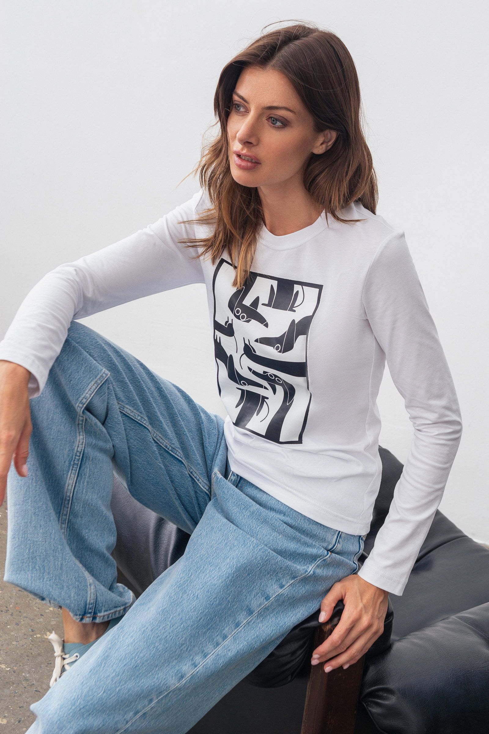 Трикотажний лонгслів білого кольору з округлою горловиною Мелік - будьте в тренді кожного дня