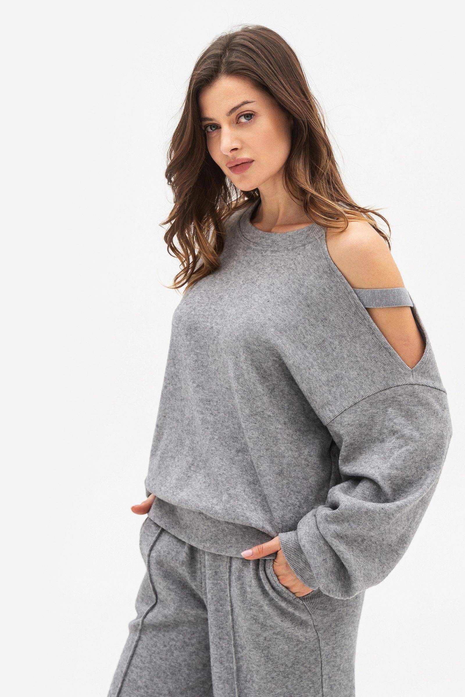 Трикотажний світшот вільного силуету сірого кольору Сендра - з різноманіттям кольорів та фасонів