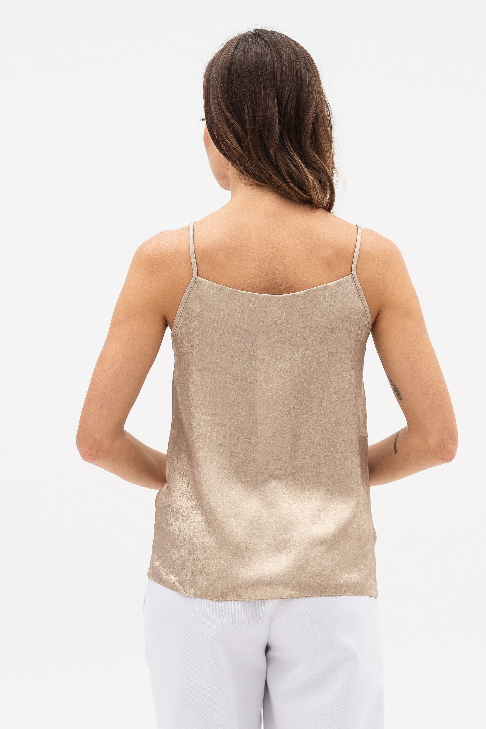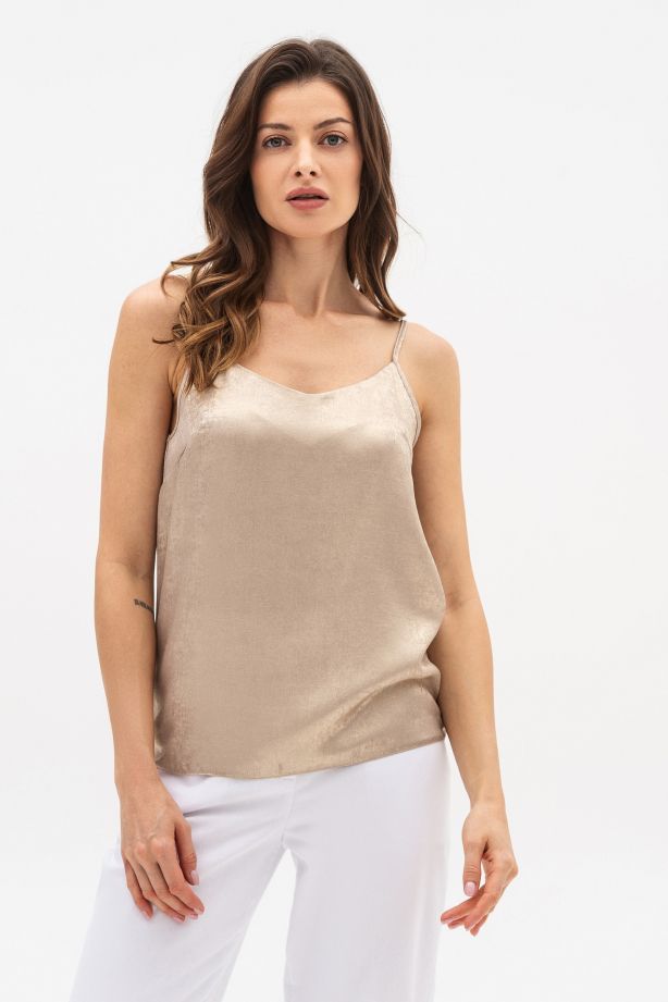 Жіноча майка золотистого кольору з шифону на бретелях Граян 03 - елегантність та стиль для вас