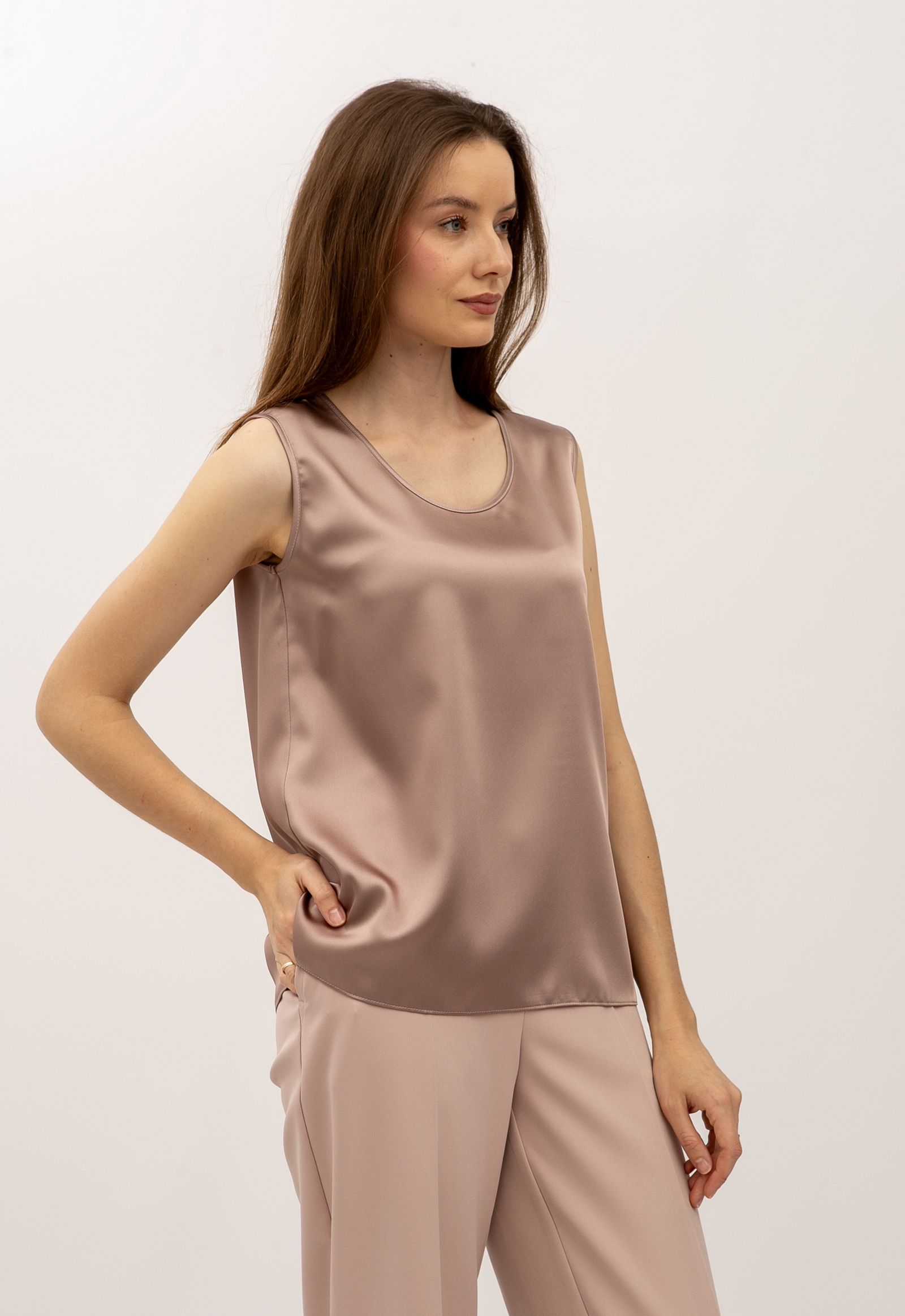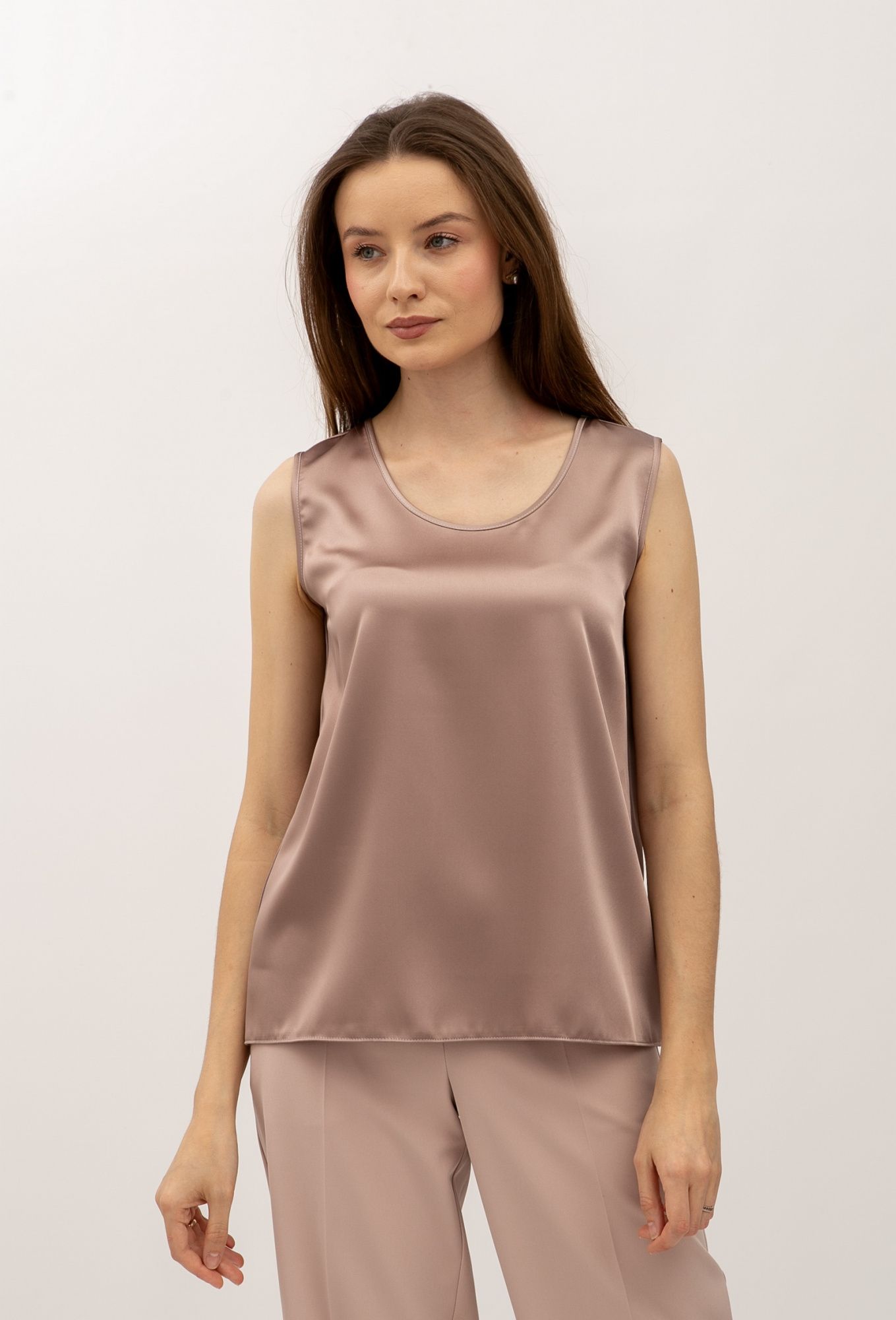Шовкова майка з широкими плечима кольору капучино Донато 08 - з високоякісних матеріалів