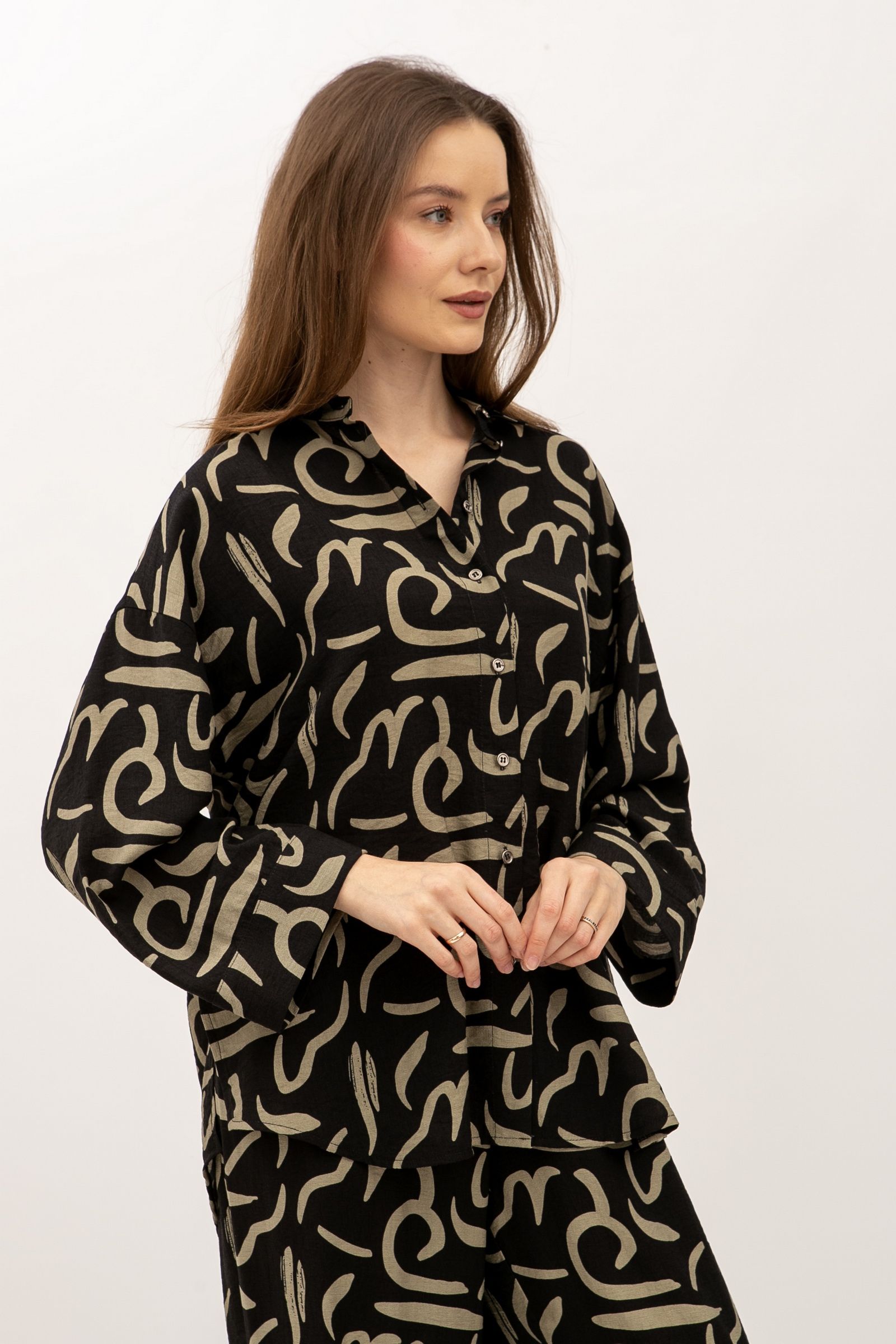 Блуза-сорочка вільного силуету з рукавами 3/4 чорного кольору Аркана - для вашої щоденної краси