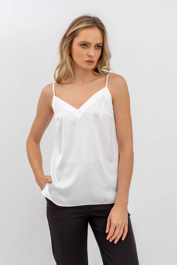Молочна шовкова майка на бретелях Маркус 5010 - для будь-якої події та сезону