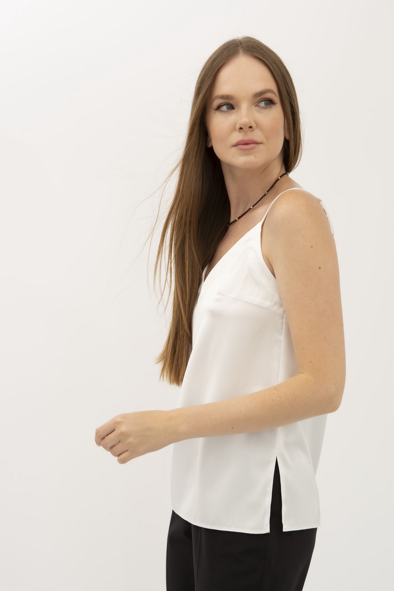 Молочна шовкова майка на бретелях Маркус 5013 - елегантність та стиль для вас