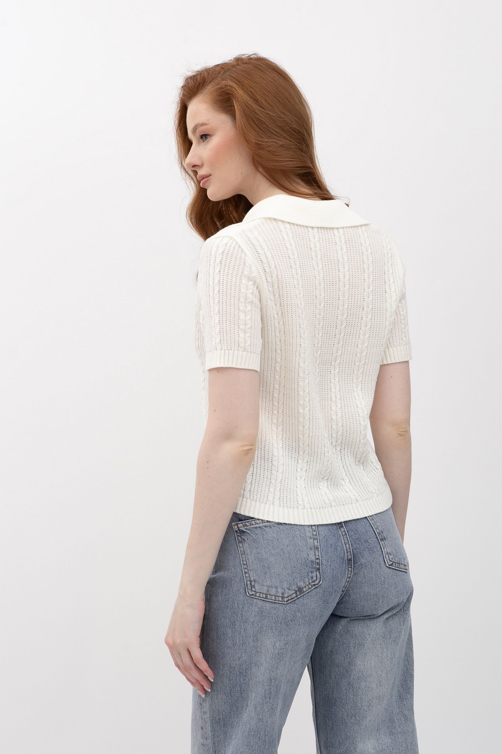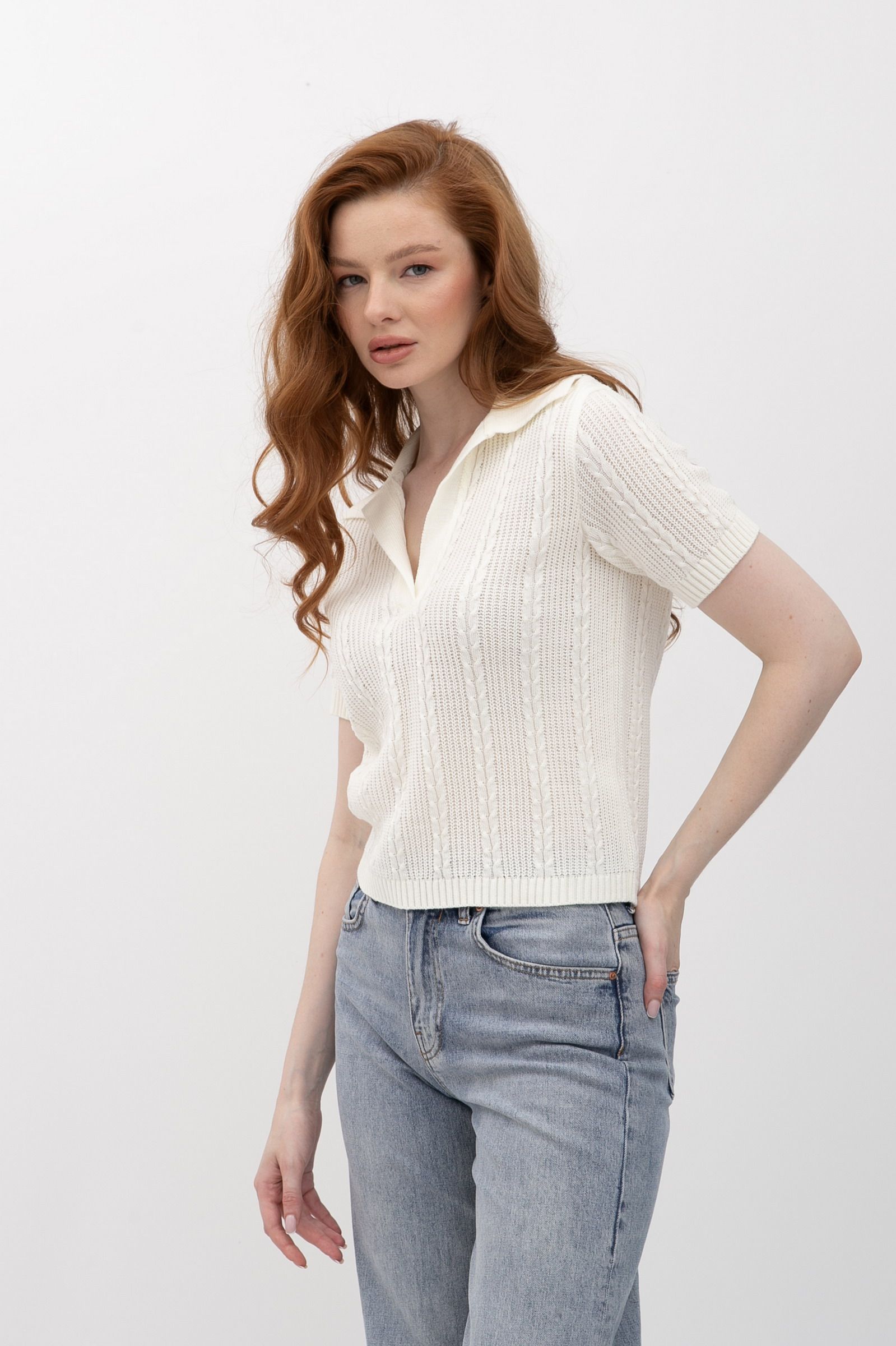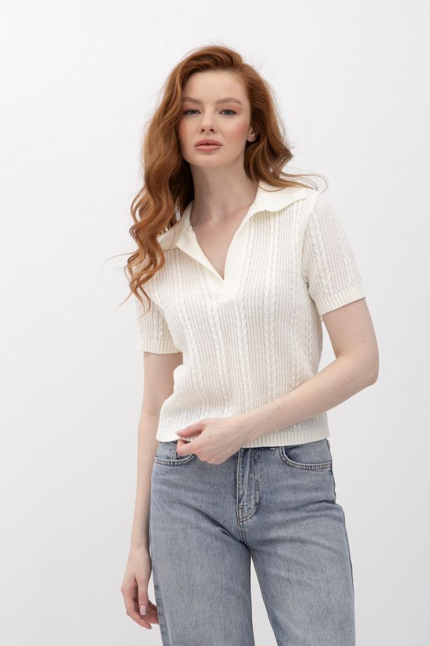 Жіночий джемпер з коміром поло молочного кольору 25207000 - для всіх випадків життя