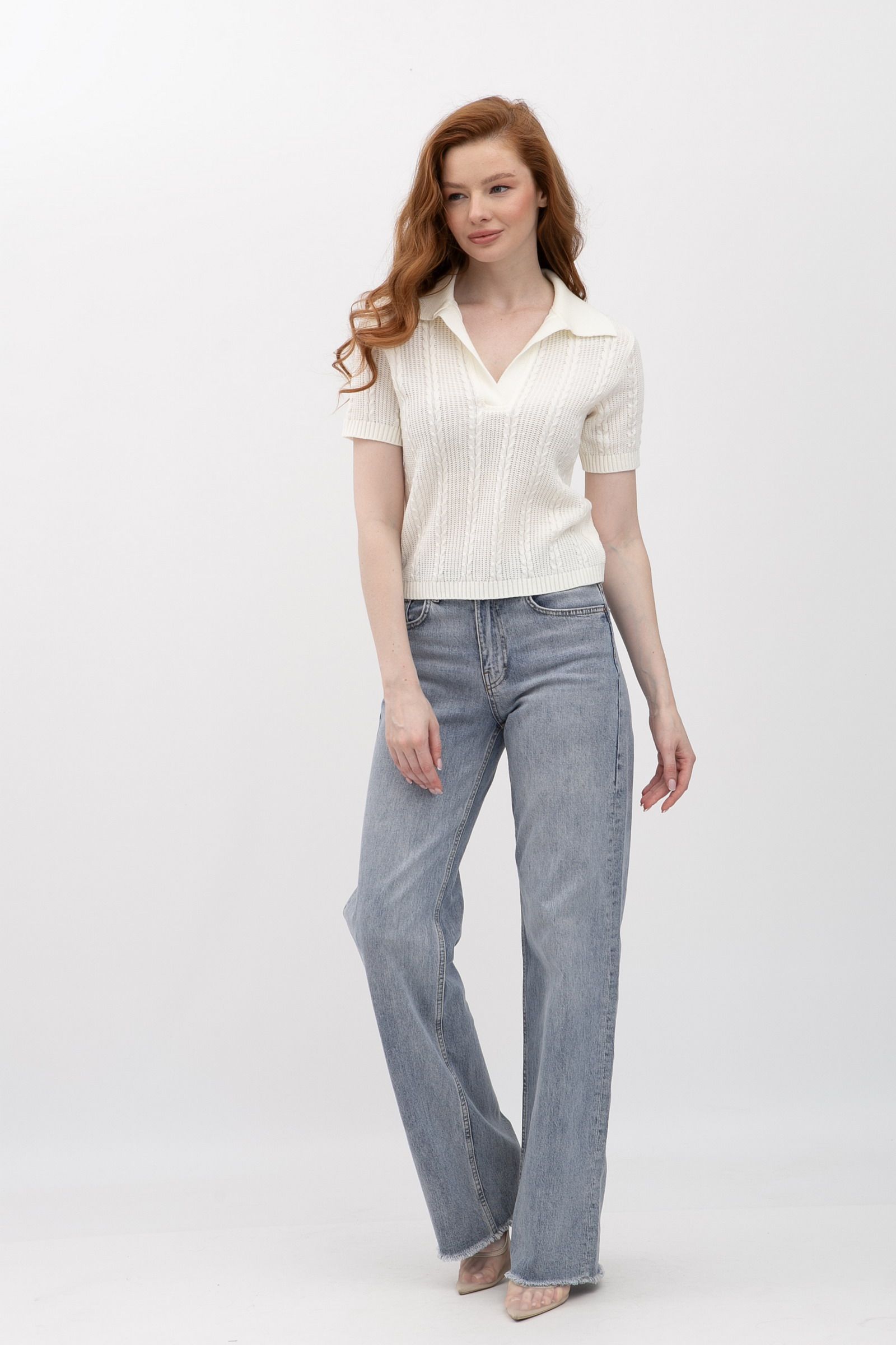 Жіночий джемпер з коміром поло молочного кольору 25207000 - ваш вибір для особливих випадків