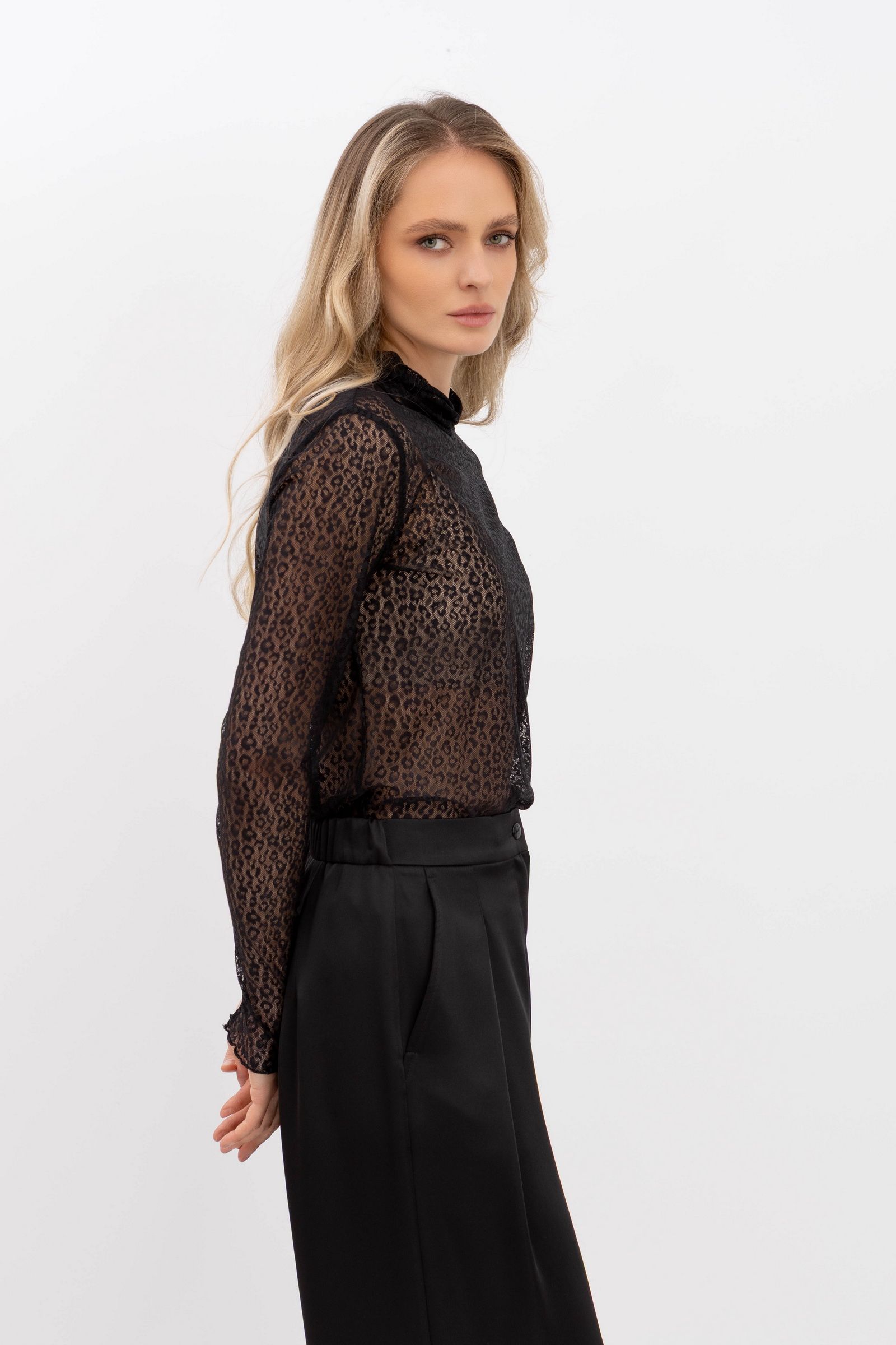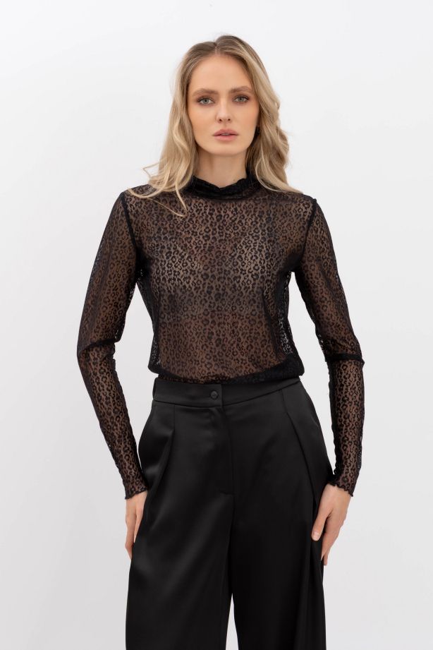 Чорний лонгслів із напівпрозорого матеріалу Ясна - модні тренди сезону