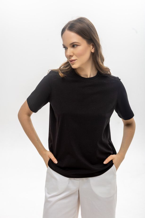 Чорна трикотажна футболка Лукре 002 - модні тренди сезону