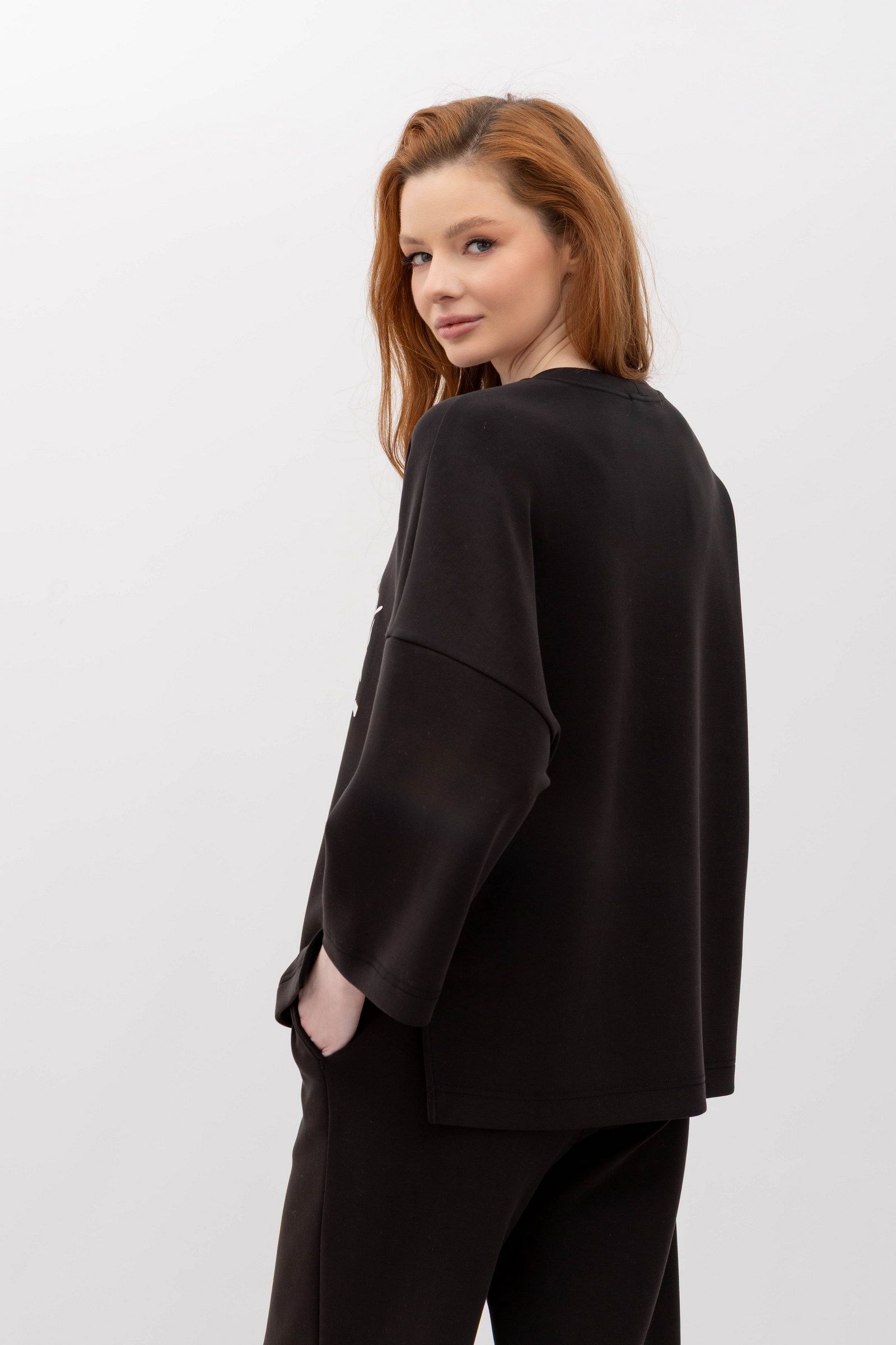 Світшот вільного крою чорного кольору Солюс 02 - гармонія стилю та комфорту